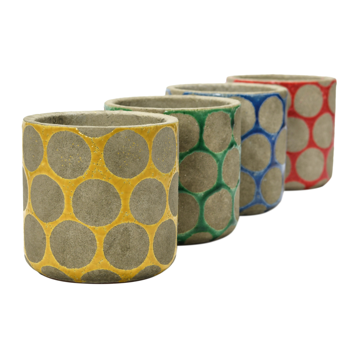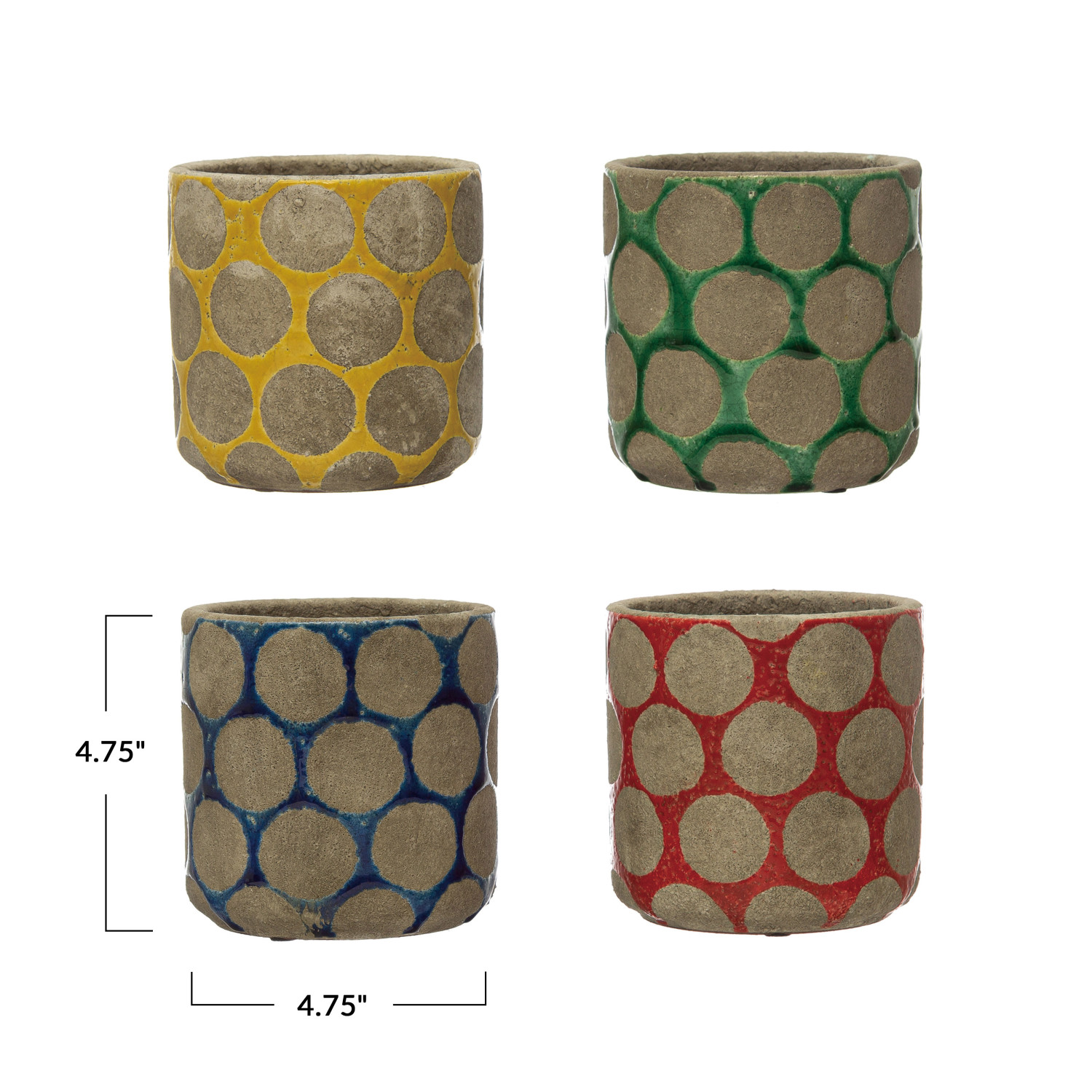Catalog Name: 4-3/4" Round x 4-3/4"H Terra-cotta Planter w/ Wax Relief Dots, 4 Colors (Holds 3" Pot)