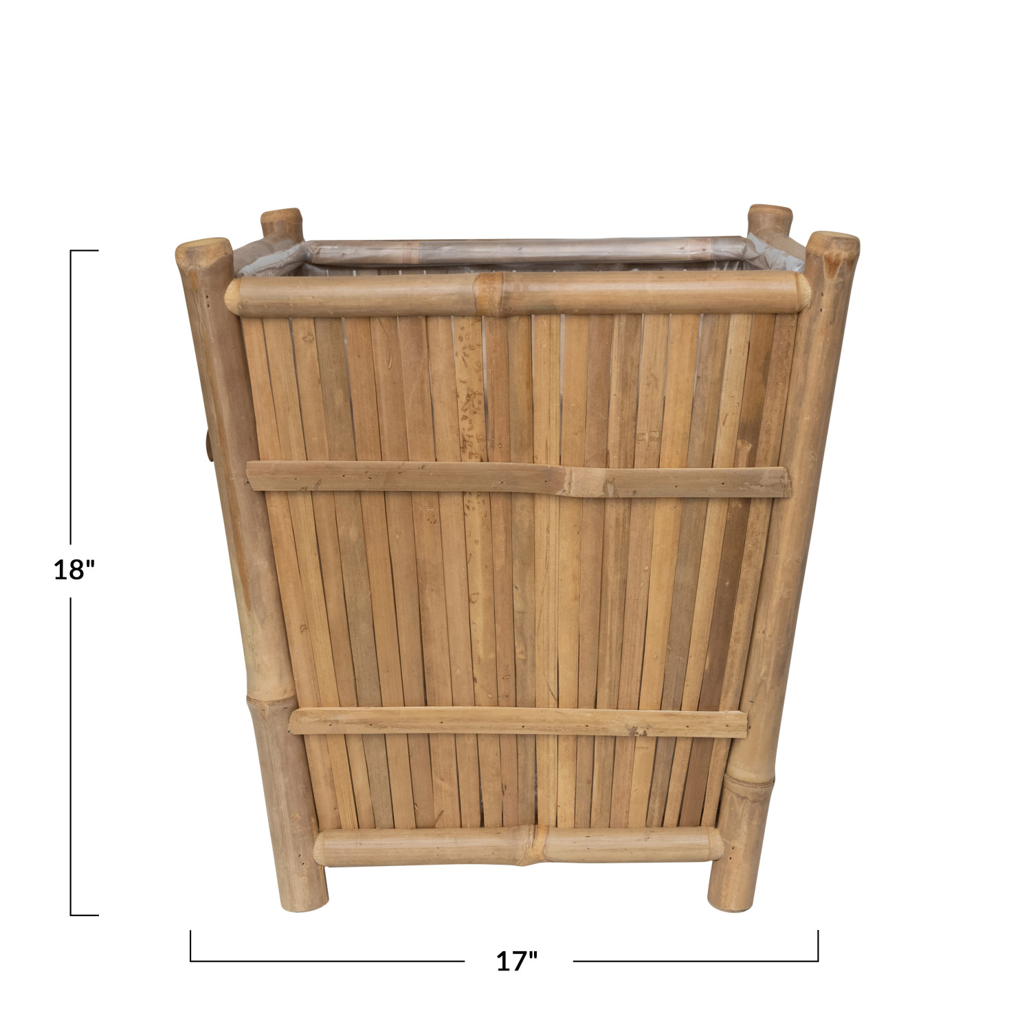 Catalog Name: 17" Square x 18"H Handmade Bamboo Footed Planter w/ Plastic Liner, Natural