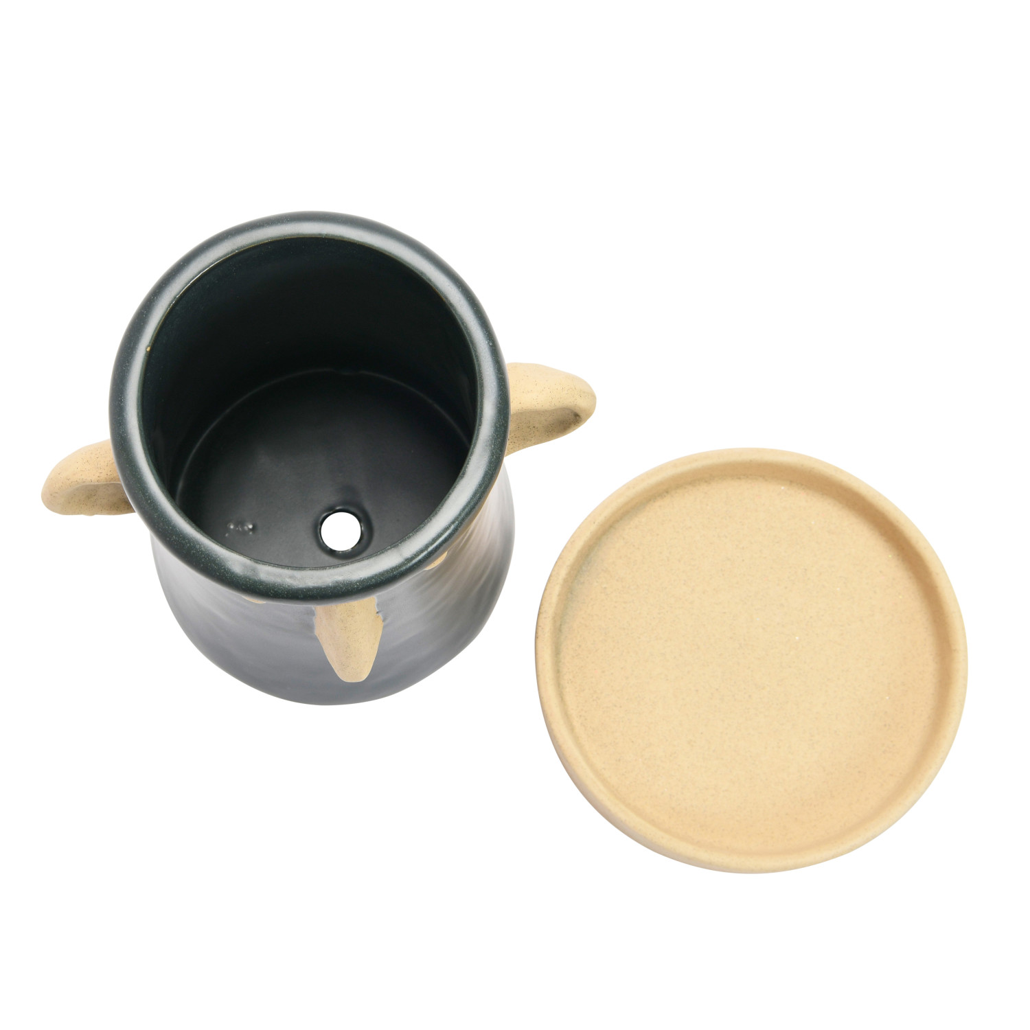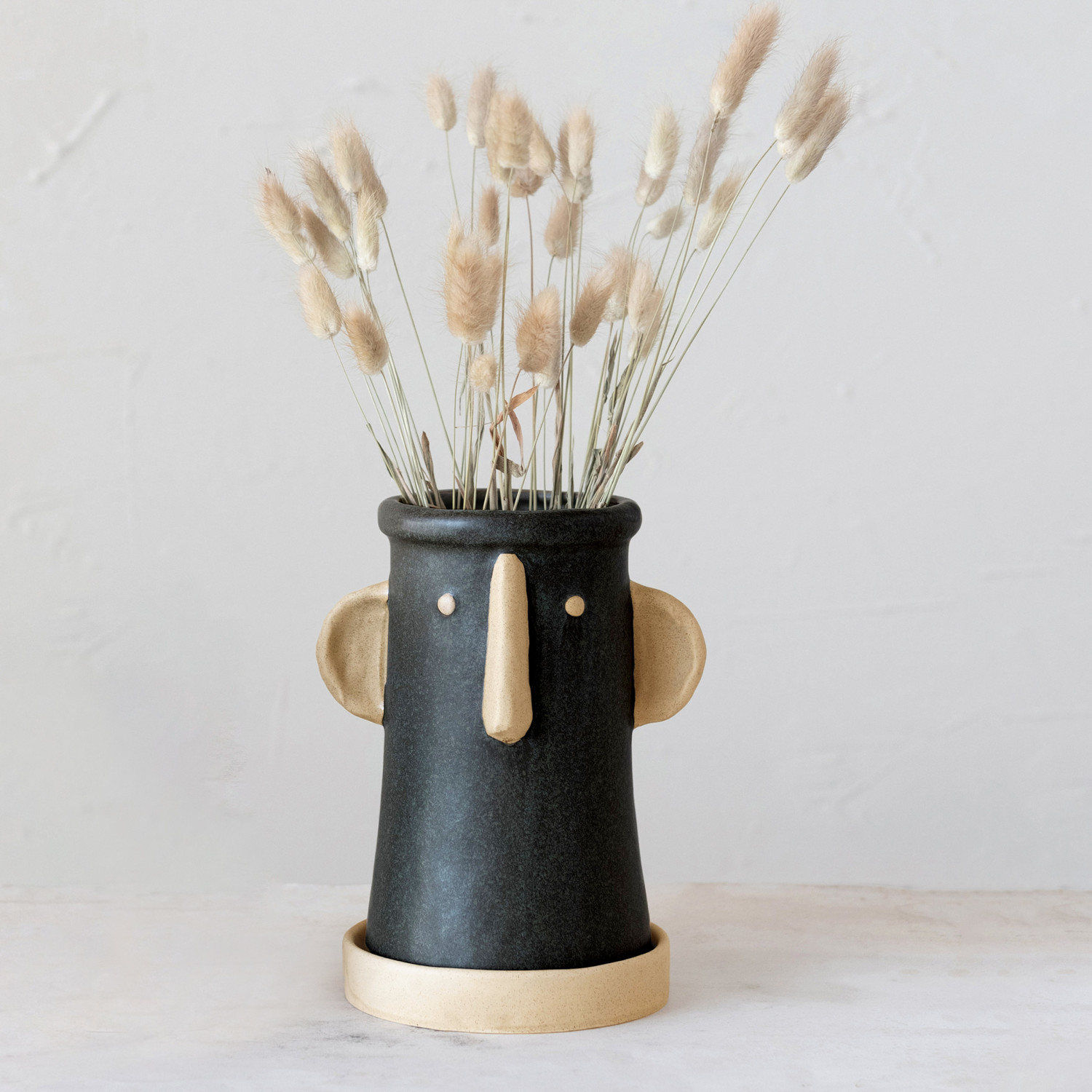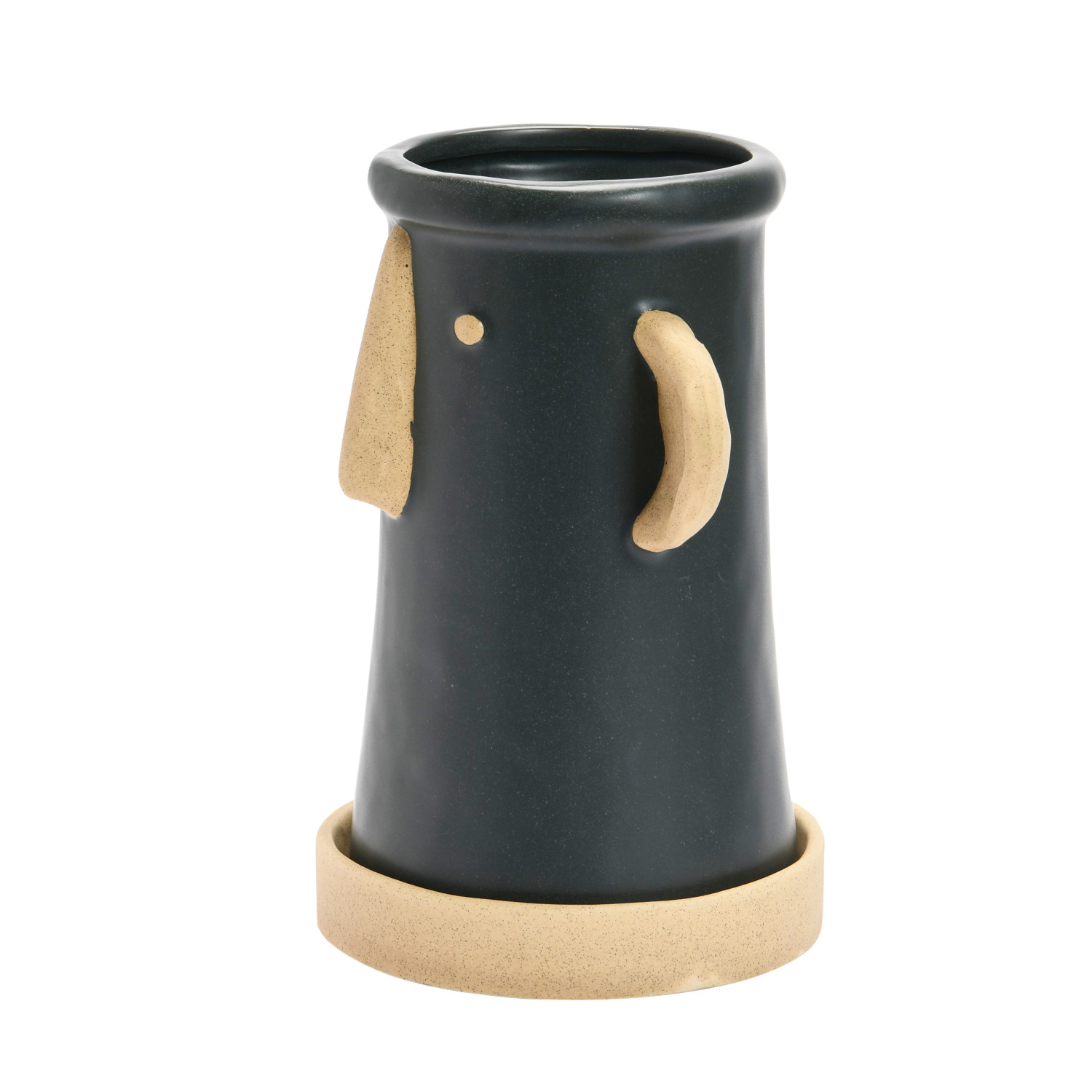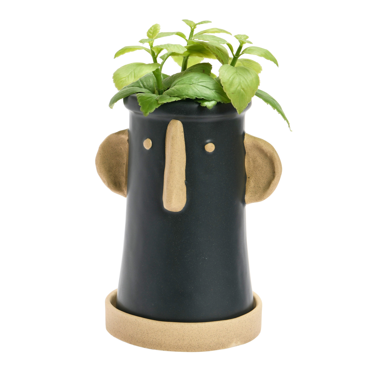 This playful stoneware planter showcases a minimalist 2-tone face in a stylish matte finish.