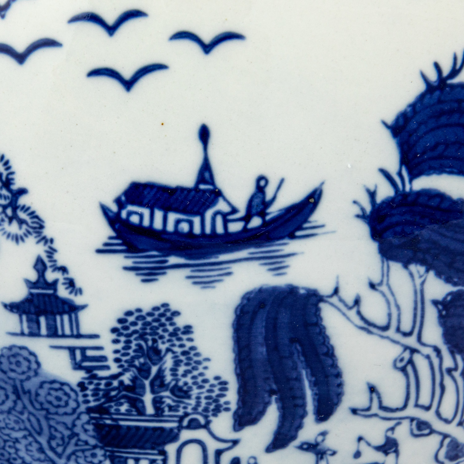 Catalog Name: 12-1/4" Round x 9-1/2"H Hand-Painted Stoneware Planter w/ Landscape, Blue & White (Holds 12" Pot)
