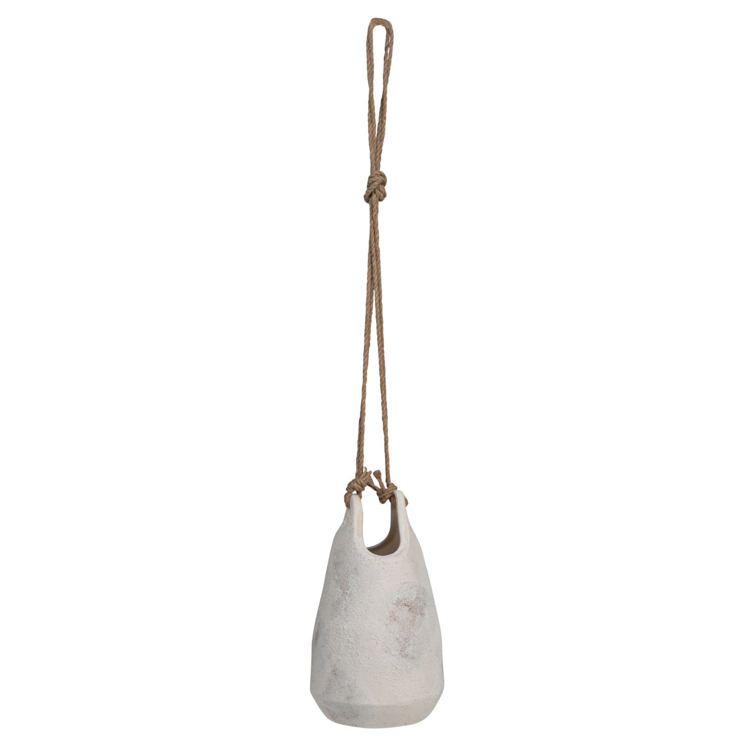 Catalog Name: 7-1/4" Round x 12-1/4"H Hanging Coarse Stoneware Planter w/ Jute Rope Hanger, Volcano Finish, White (Each One Will Vary)