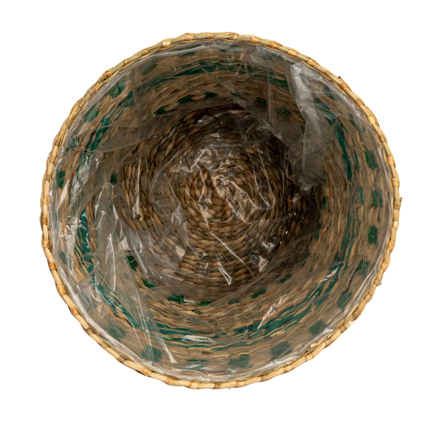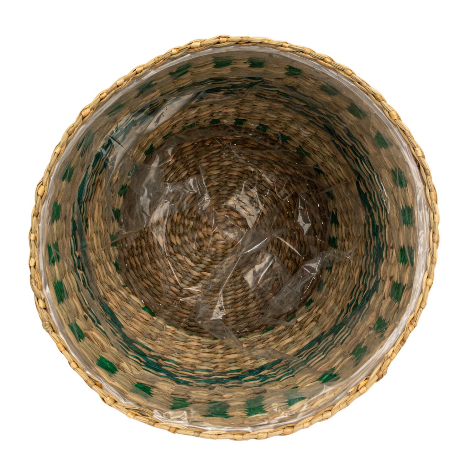 Catalog Name: 11" Round x 9-3/4"H & 9-3/4" Round x 9"H Seagrass Baskets w/ Pattern & Plastic Liners, Green & Natural, Set of 2