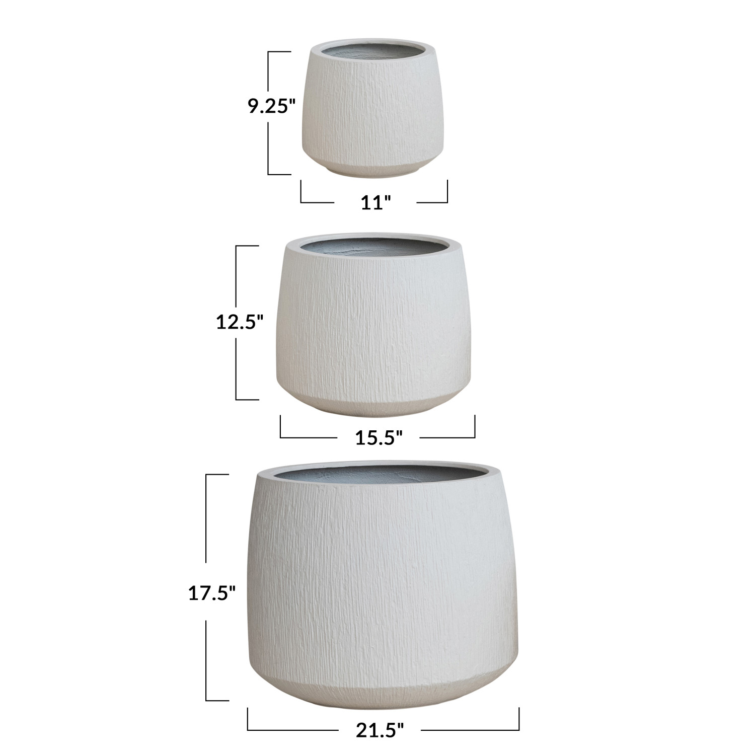 Catalog Name: 21-1/2" Round x 17-1/2"H, 15-1/2" Round x 12-1/2"H & 11" Round x 9-1/4"H Lightweight Eco Stone Indoor/Outdoor Grooved Planters, White, Set of 3 (Holds 18", 12" & 8-1/2" Pots)