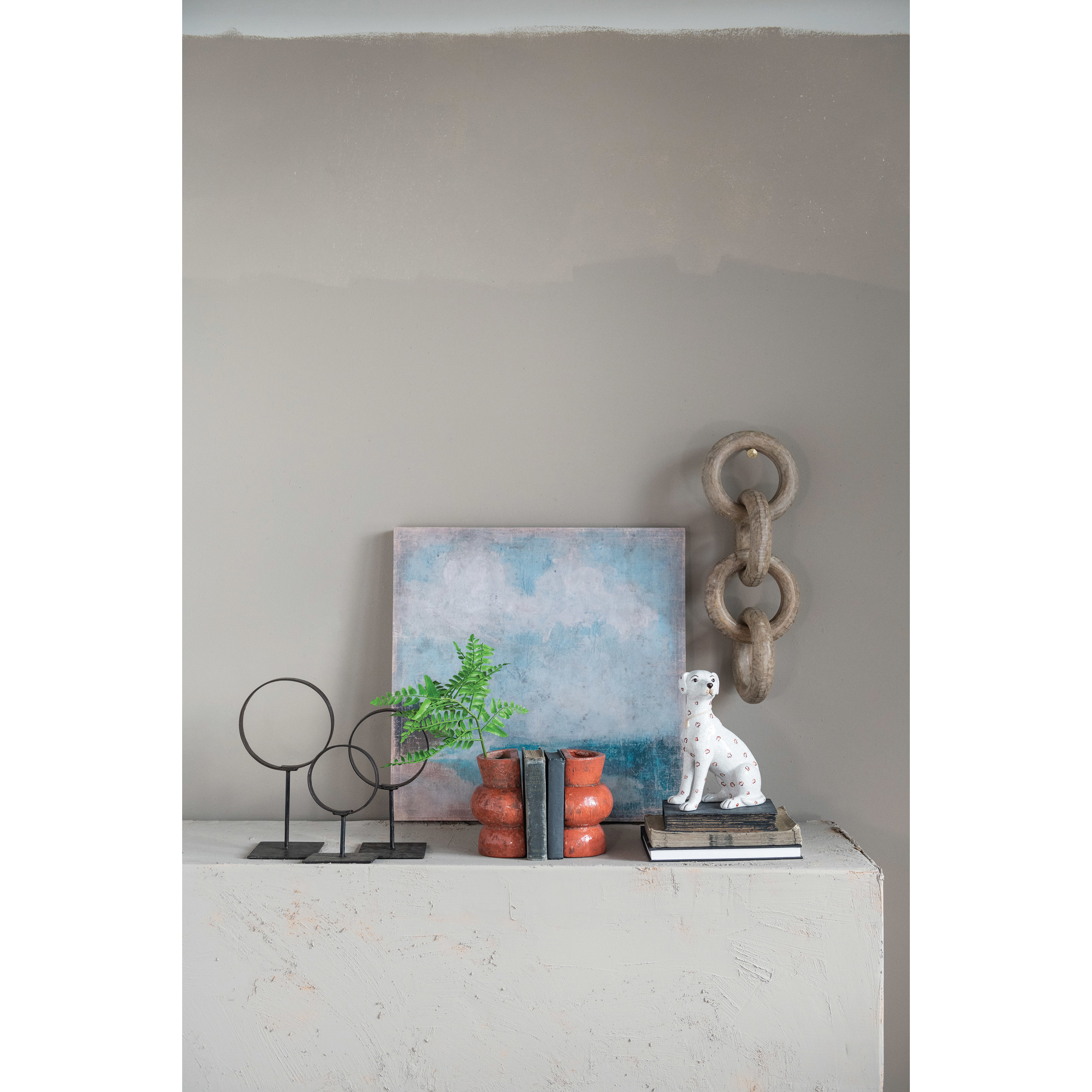 This carved chain is a must-have decorative piece for any home. Made out of mango wood, this carved chain features 4 rings and a soft, neutral coloring. This piece is perfect for adding depth to built in shelves, coffee tables, and hanging on any wall space.