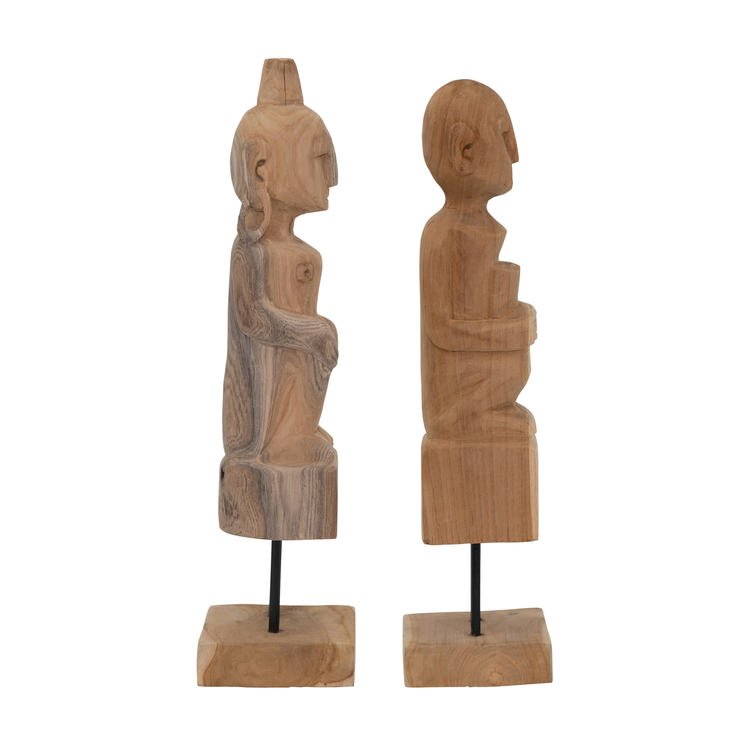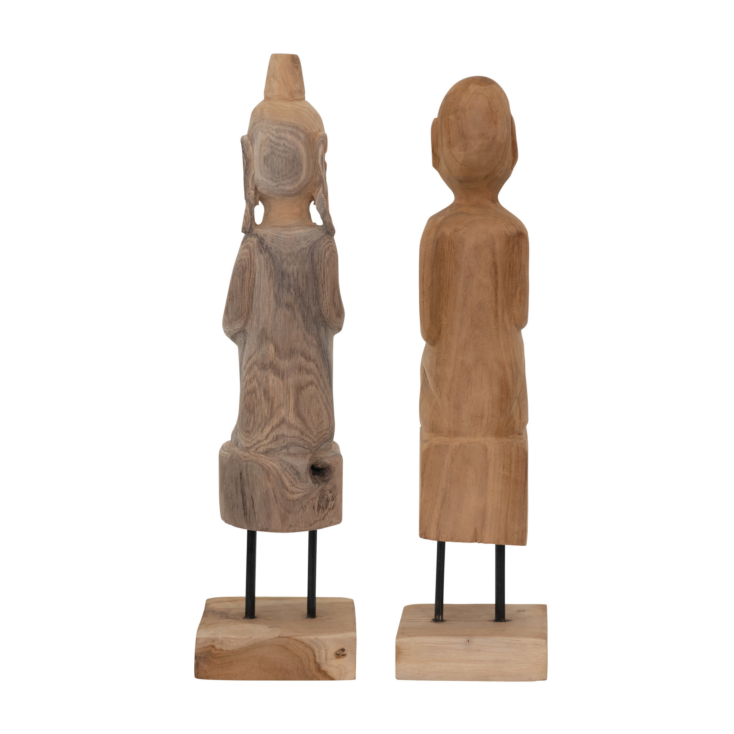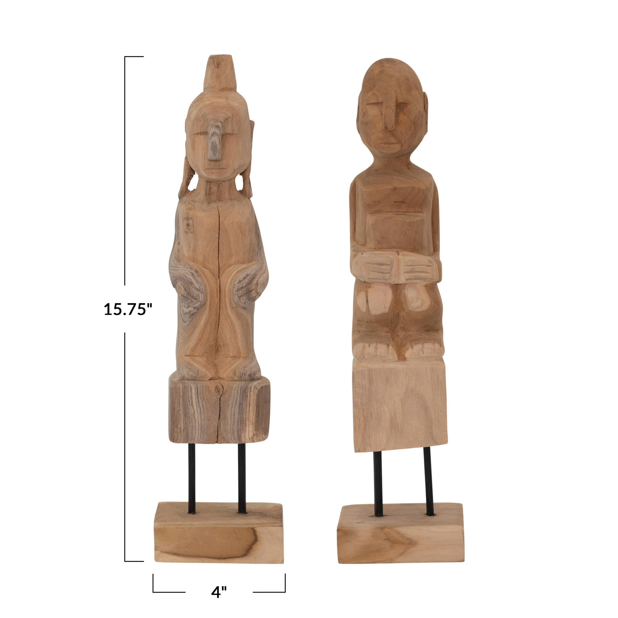 Catalog Name: 4" Square x 15-3/4"H Hand-Carved Teakwood Root Figure on Stand, Natural, 2 Styles (Each One Will Vary)