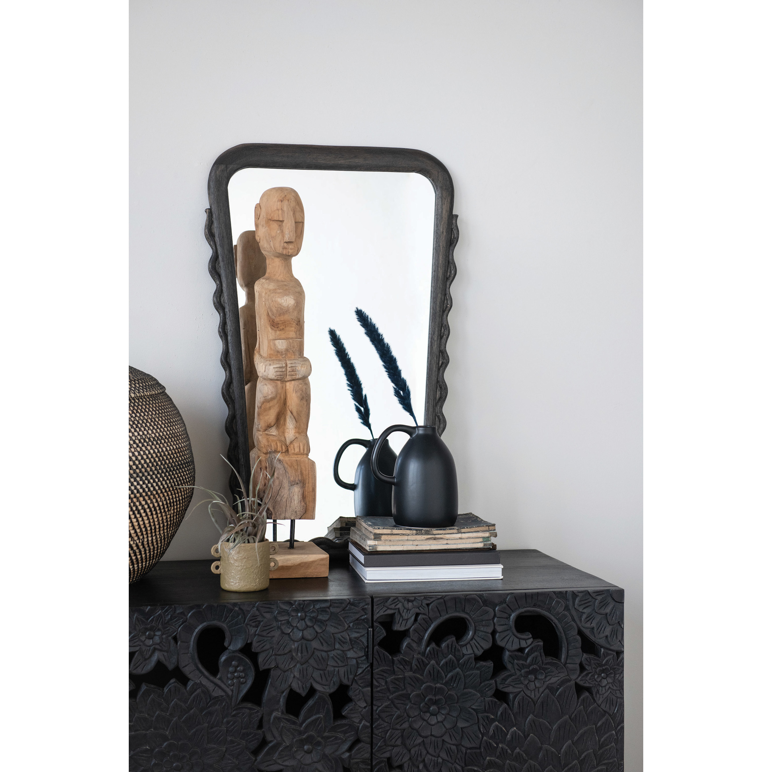 This statue is a beautiful decorative piece for any home. Made out of wood and metal, this statue is an oblong abstract man. This lends itself perfectly into any built in shelves, table tops, or furniture pieces for a unique and eclectic display.