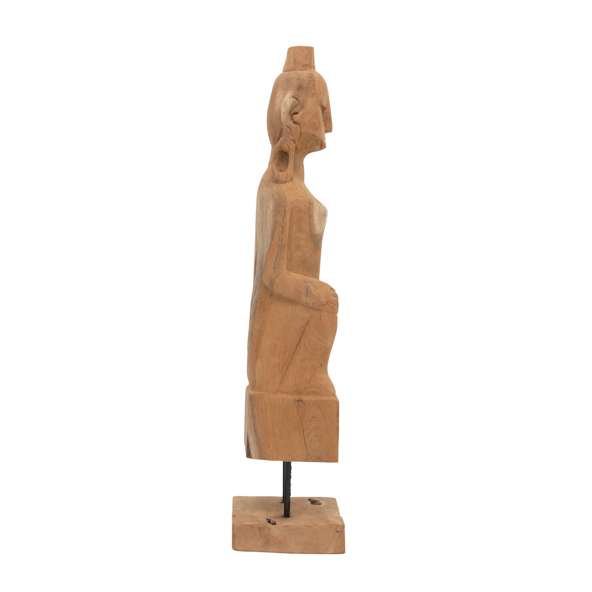 Catalog Name: 7" Square x 31-1/2"H Hand-Carved Teakwood Root Figure on Stand, Natural (Each One Will Vary)