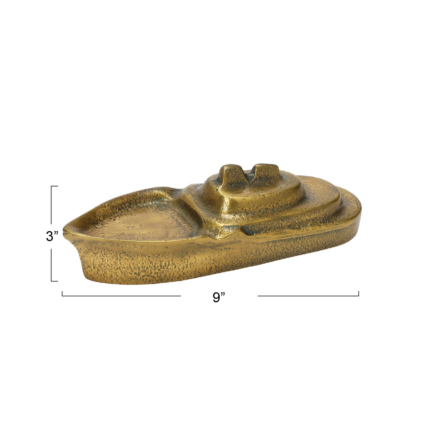Catalog Name: 9"L x 3"W x 2-3/4"H Cast Aluminum Boat, Antique Gold Finish