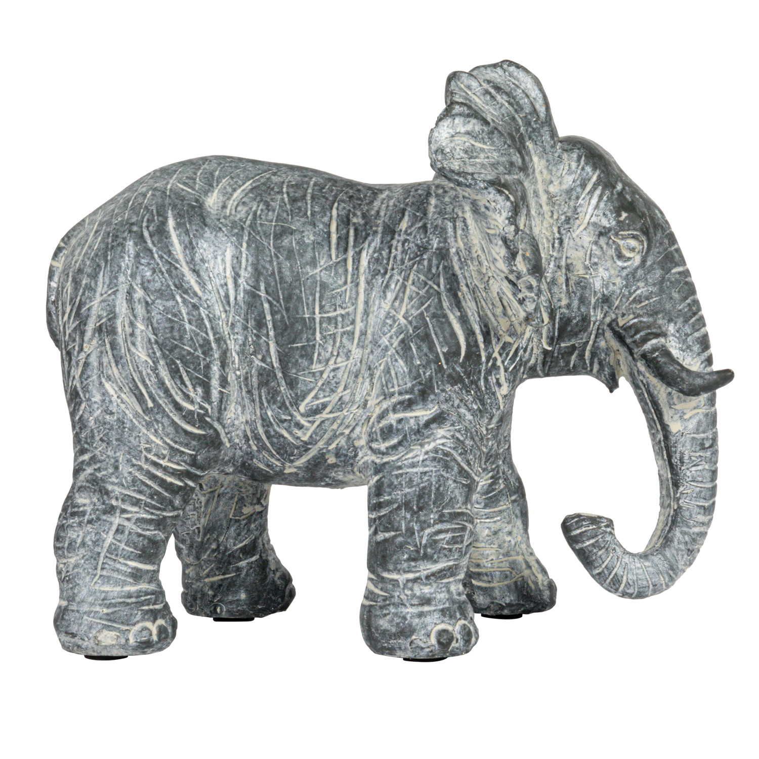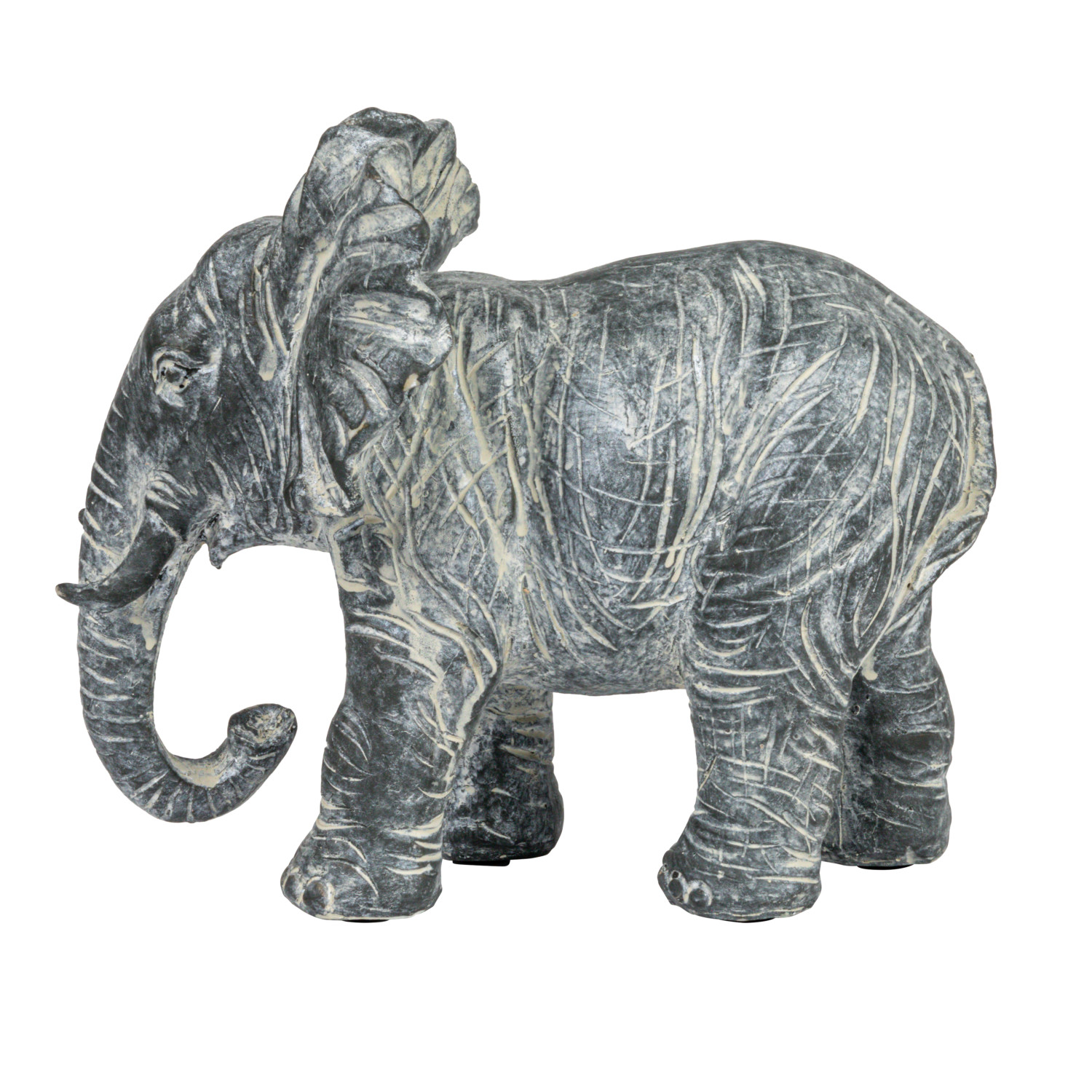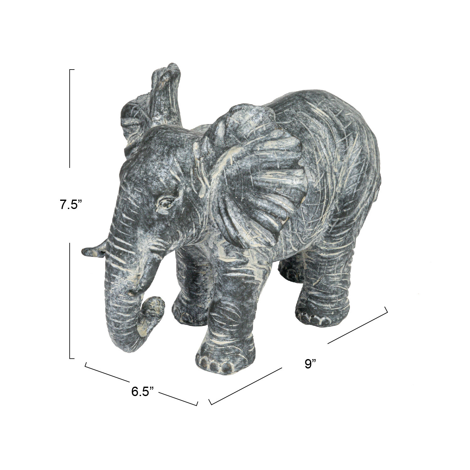 Catalog Name: 9"L x 6-1/2"W x 7-3/4"H Resin Elephant, Distressed Grey