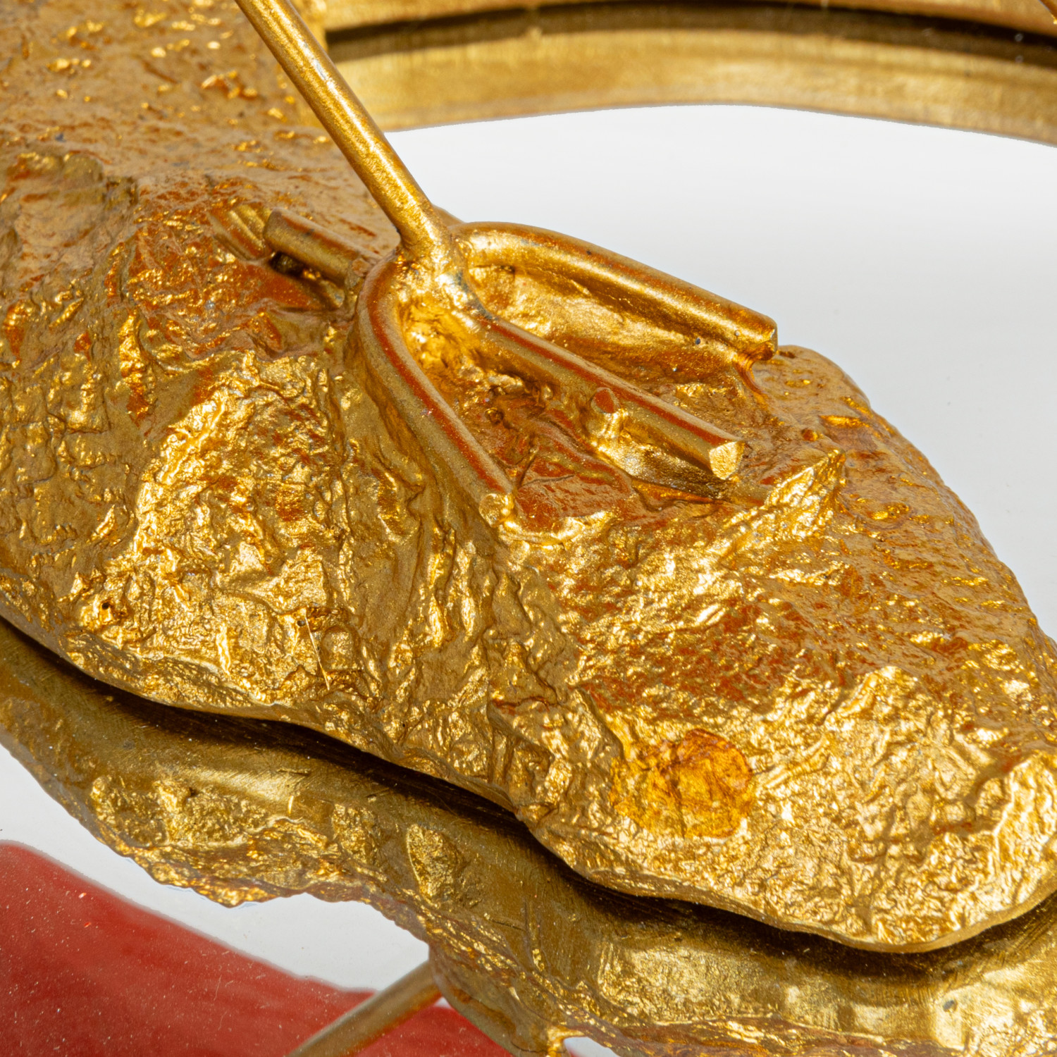 Catalog Name: 10"L x 8-1/4"W x 7"H Resin Scarlet Ibis on Mirrored Tray, Gold Finish & Coral Color