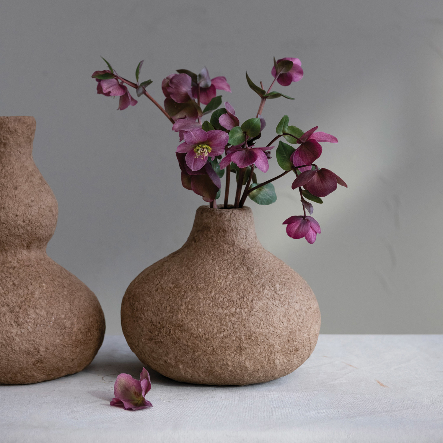 Catalog Name: 9-3/4" Round x 9-1/2"H Decorative Handmade Paper Mache Vase, Brown (Each One Will Vary)