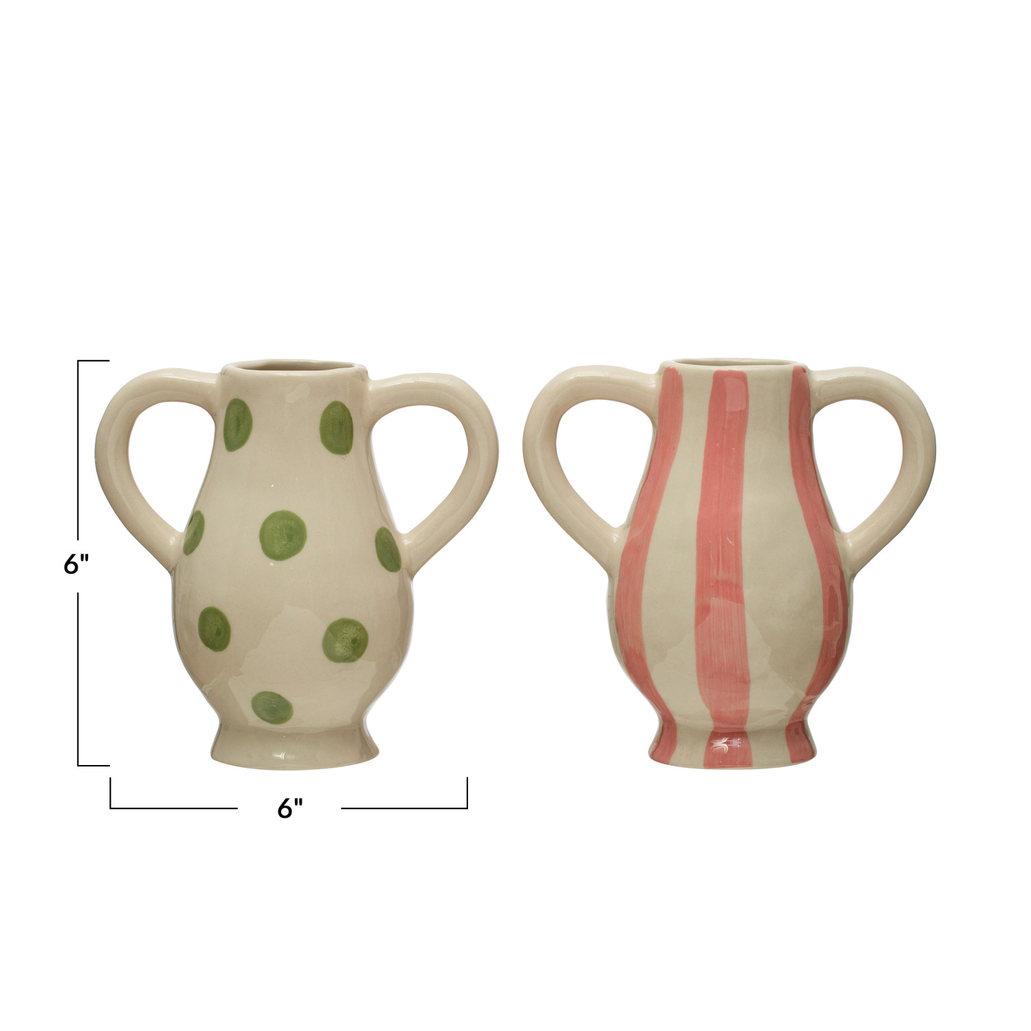 Catalog Name: 6"L x 3-3/4"W x 6"H Hand-Painted Stoneware Vase w/ Handles, 2 Styles