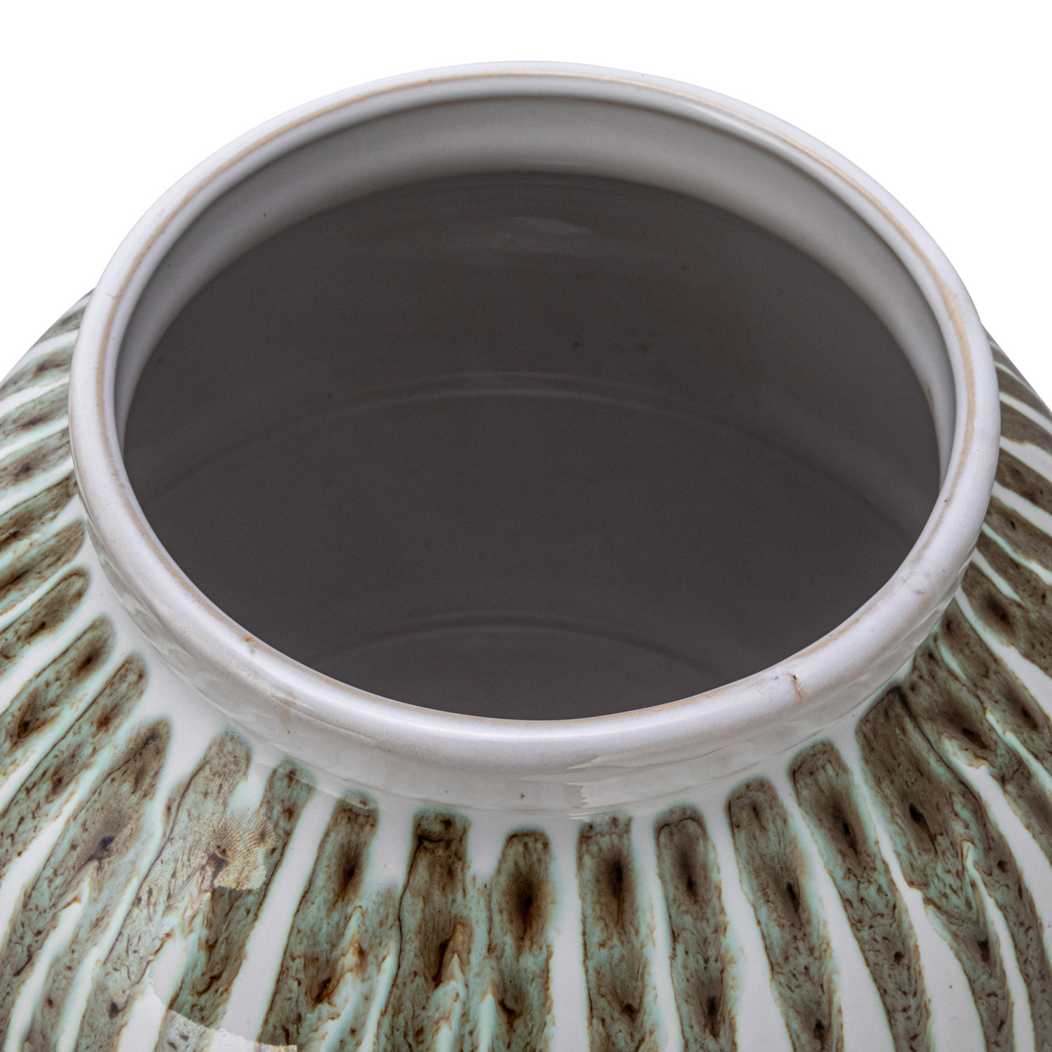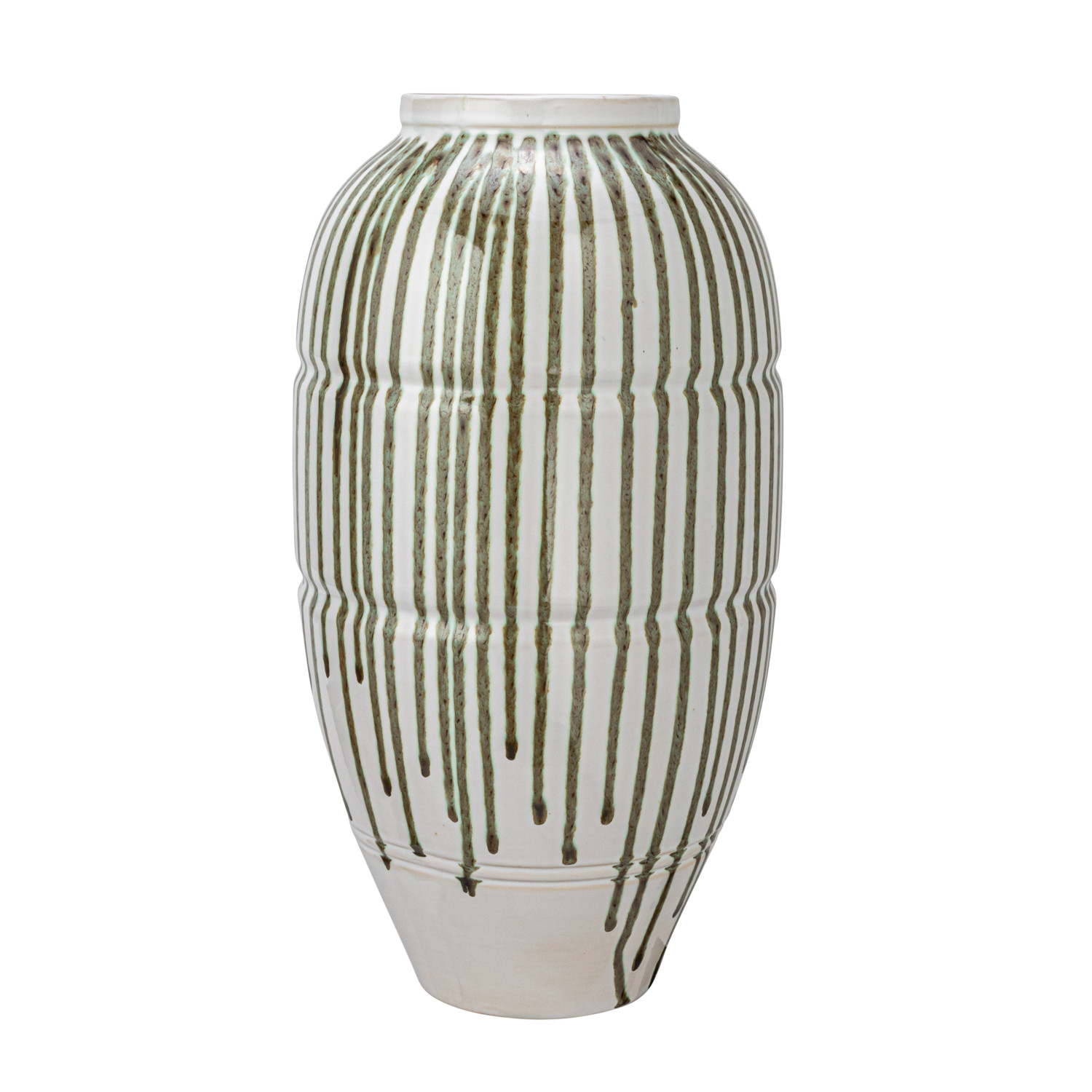 Catalog Name: 10" Round x 18-1/2"H Hand-Painted Stoneware Vase w/ Drip Glaze, White & Green, Truck Ship (Each One Will Vary)
