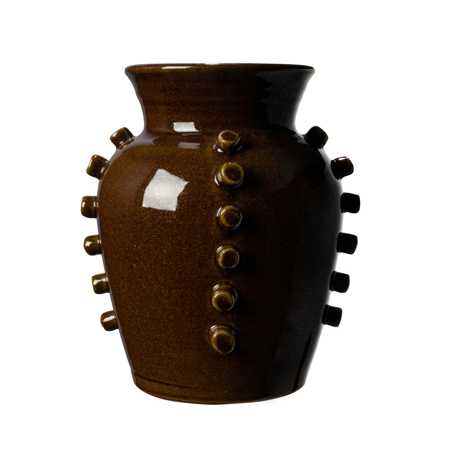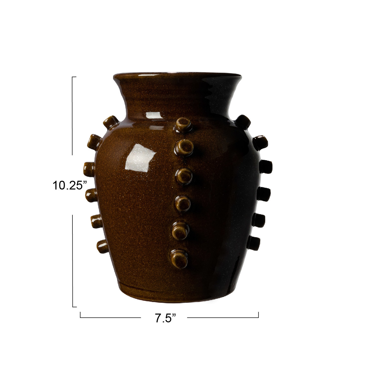 Catalog Name: 7-1/2" Round x 10-1/4"H Terra-cotta Vase w/ Hobnails, Brown
