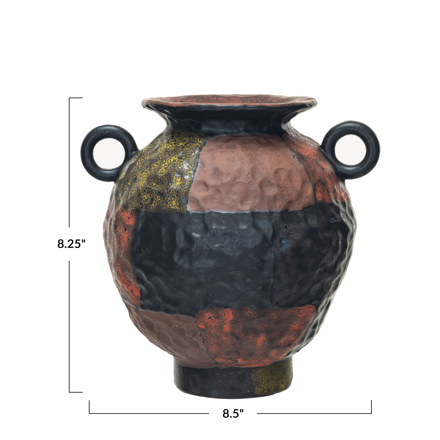 Catalog Name: 8-1/2"L x 7-1/4"W x 8-1/4"H Hand-Painted Textured Stoneware Vase w/ Handles, Reactive Glaze, Multi Color (Each One Will Vary)