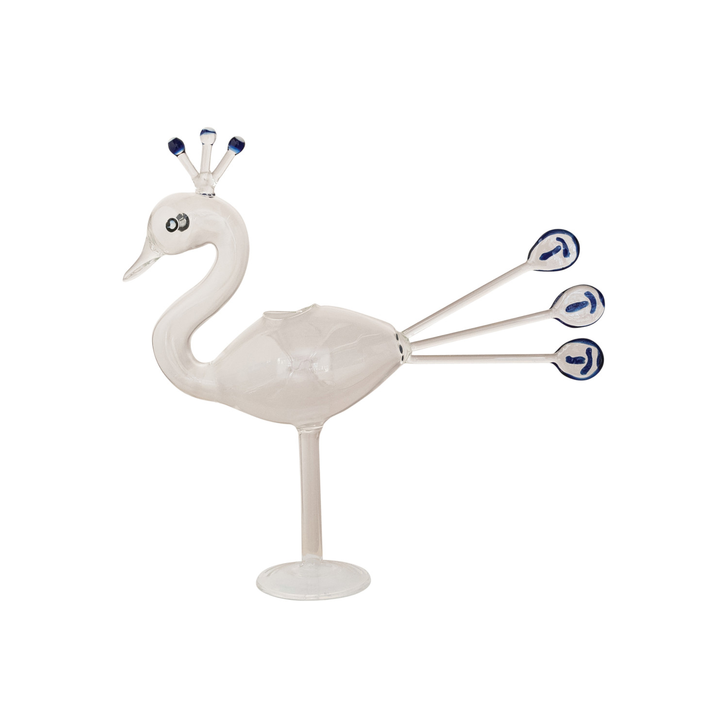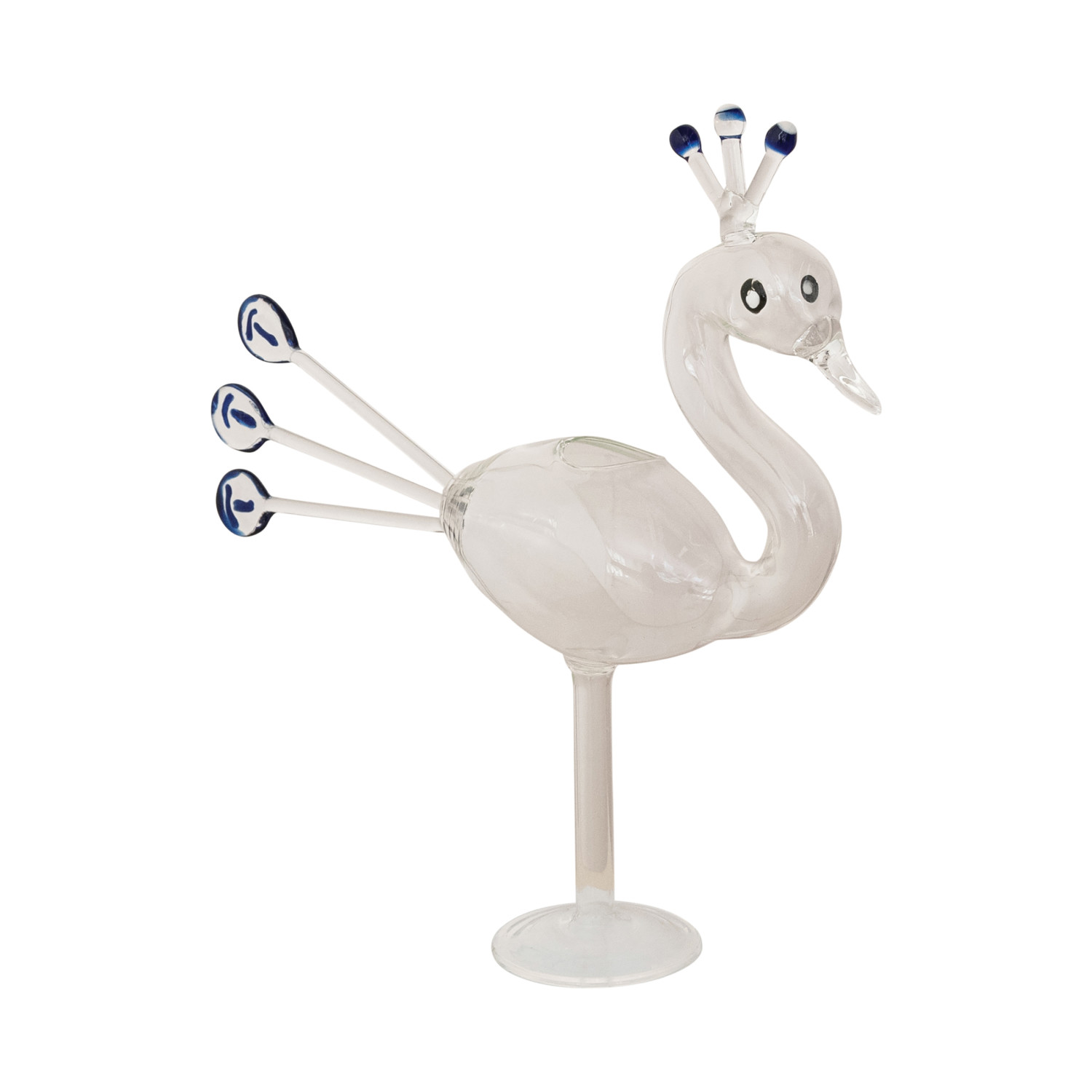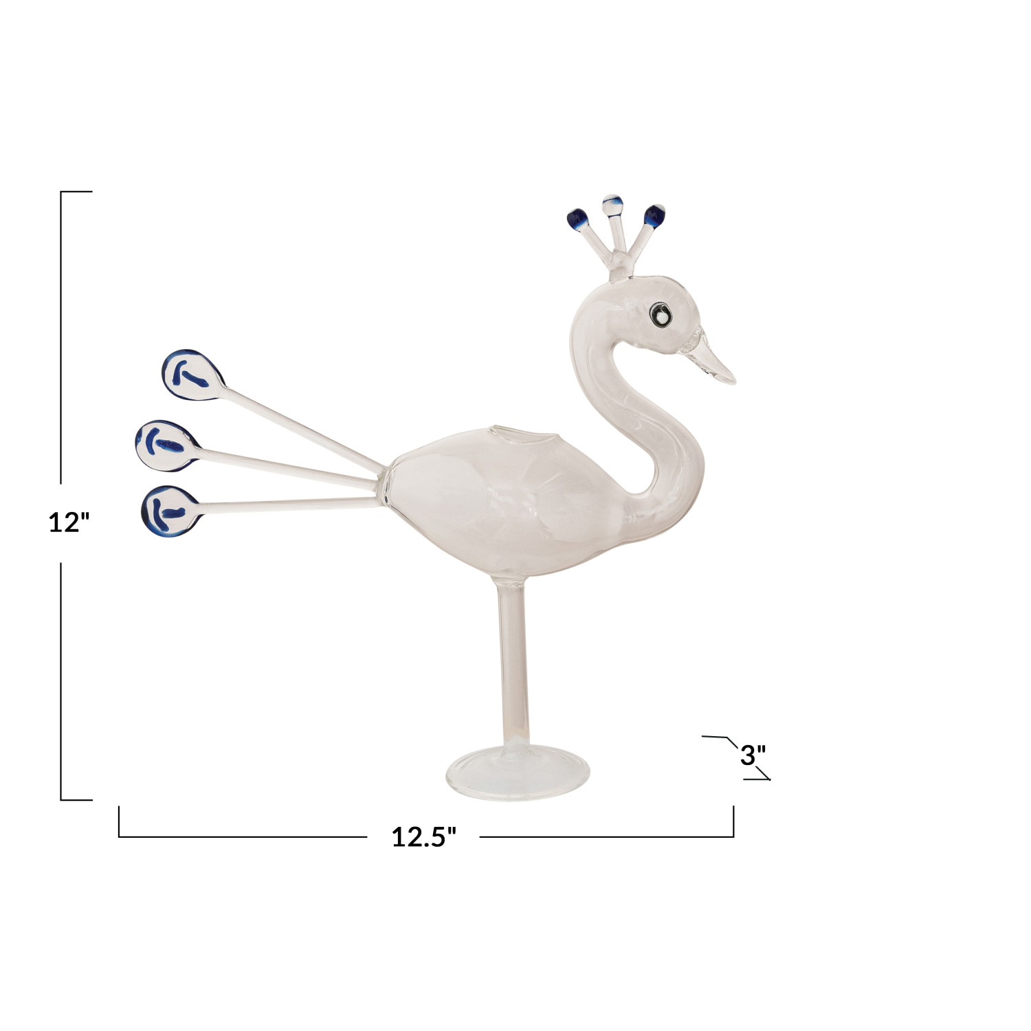 Handmade Glass Peacock Shaped Vase, Blue & Clear