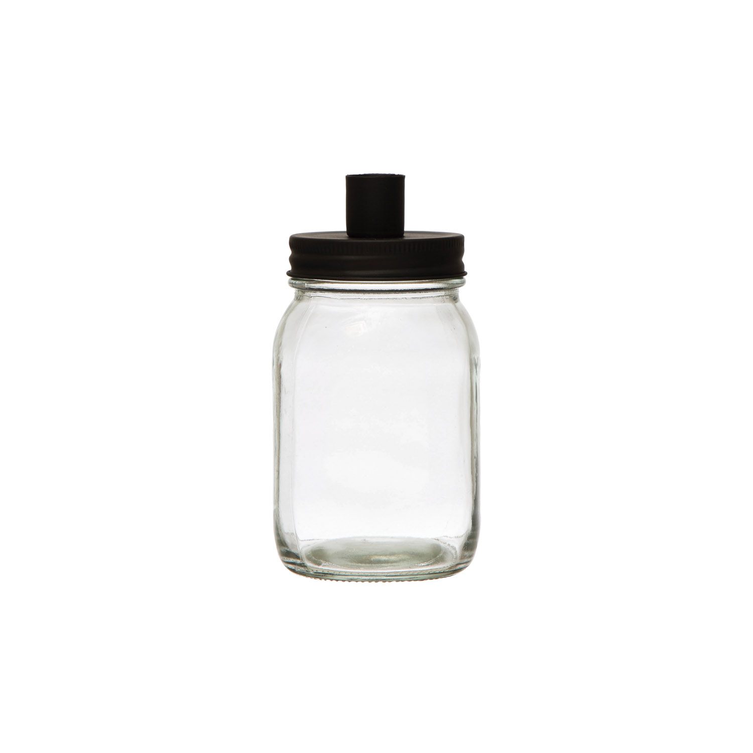 Catalog Name: 3-1/4" Round x 6-1/4"H Decorative Glass Jar with Metal Taper Holder Lid, Black