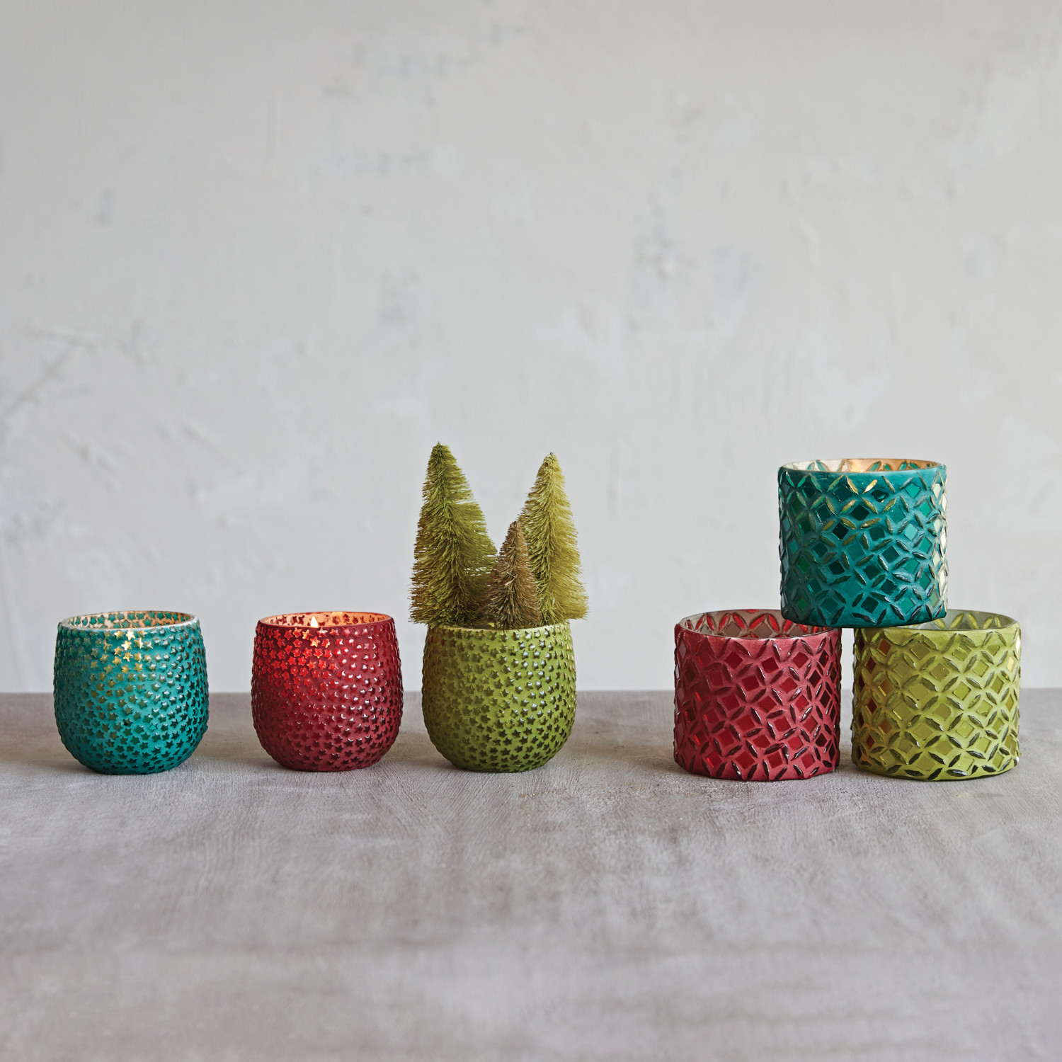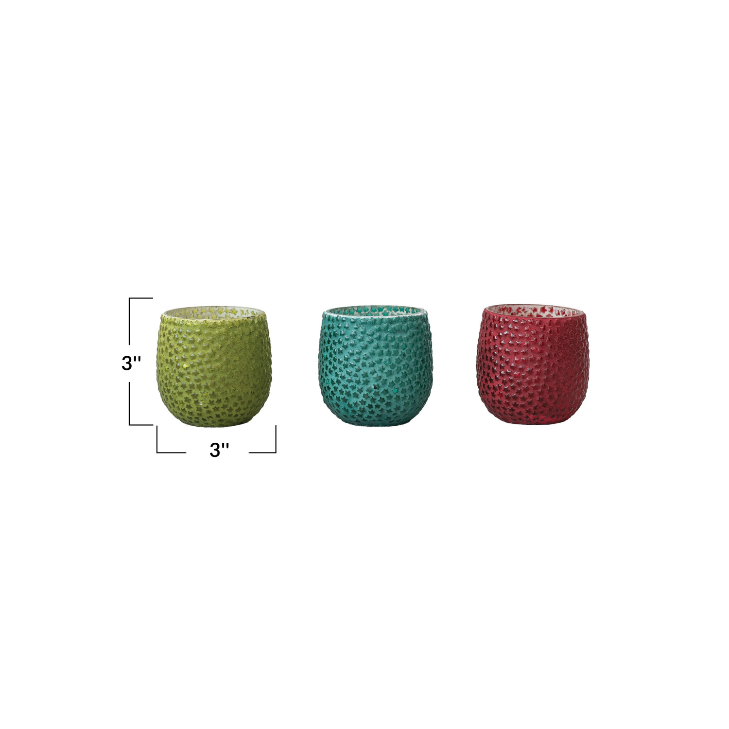 3" Round x 3"H Mosaic Glass Votive Holder w/ Stars, 3 Colors