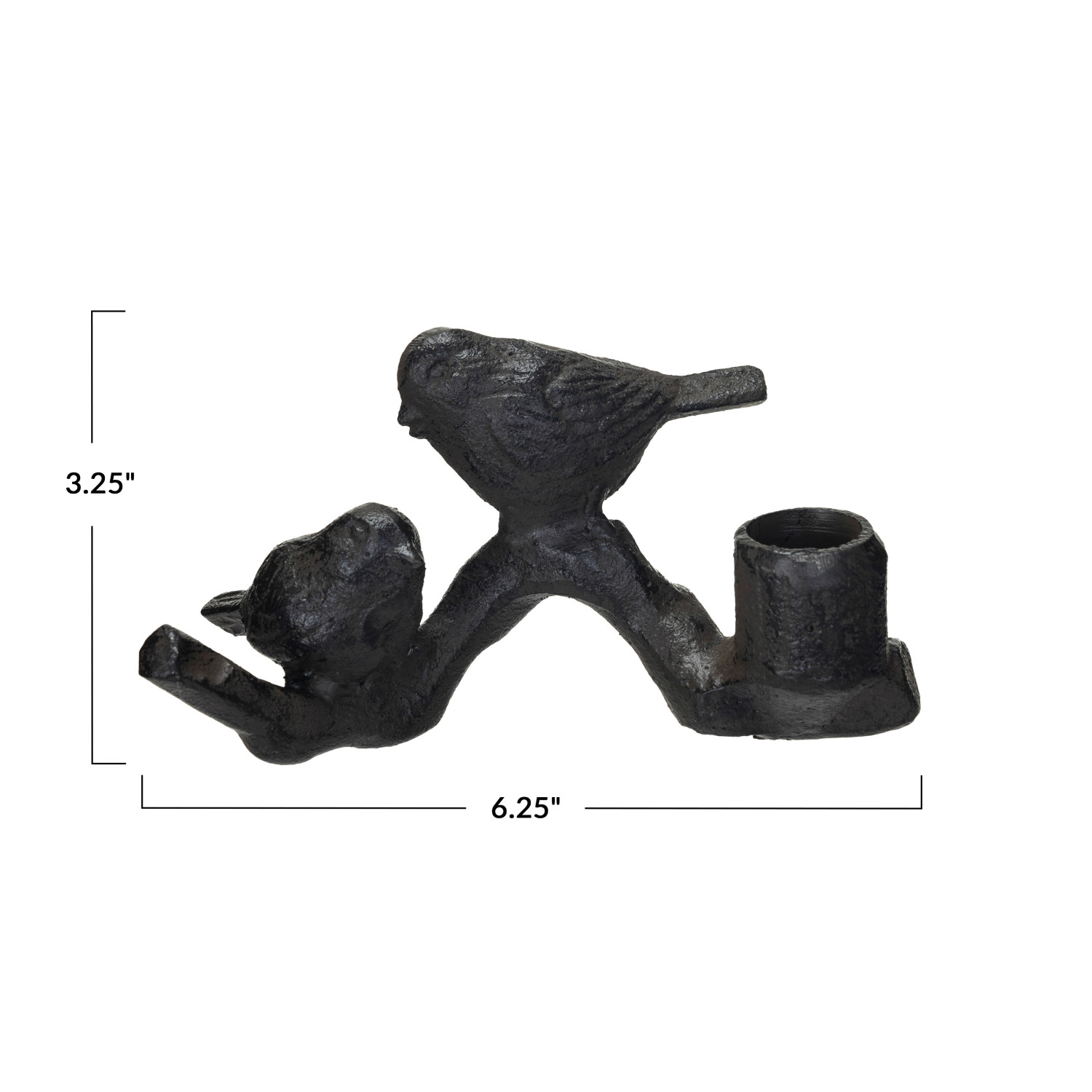 Catalog Name: 6-1/4"L x 2-1/2"W x 3-1/4"H Cast Iron Taper Holder w/ Birds on Branch, Black/Brown
