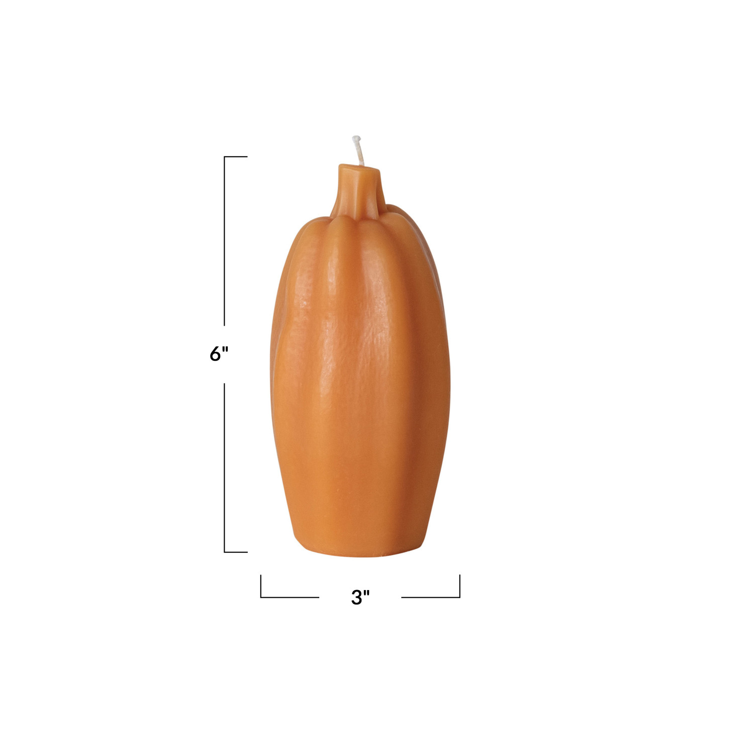 Catalog Name: 3" Round x 6"H Unscented Squash Shaped Candle, Orange Color (Approximate Burn Time 68 Hours)