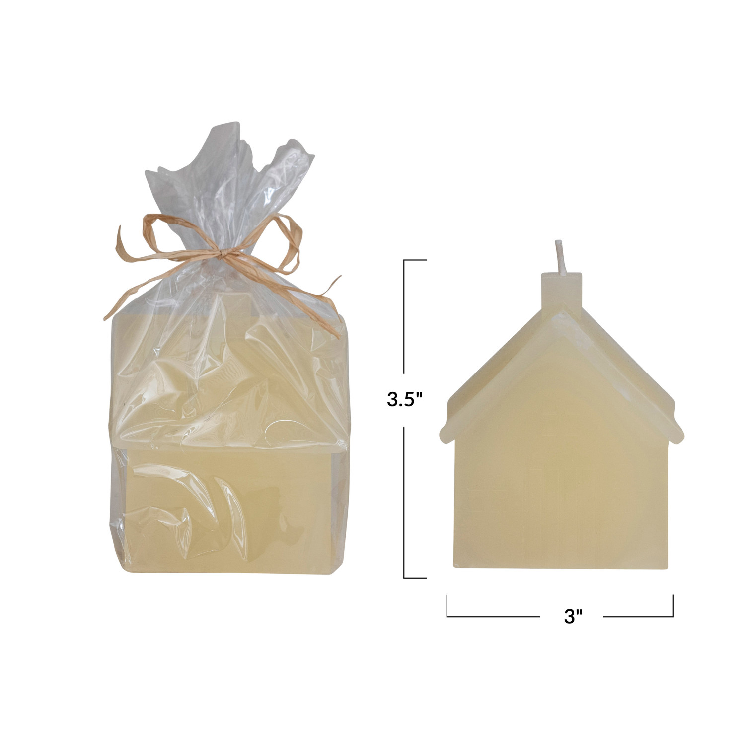 Catalog Name: 3" Square x 3-1/2"H Unscented House Shaped Candle, Cream Color (Approximate Burn Time 32 Hours)