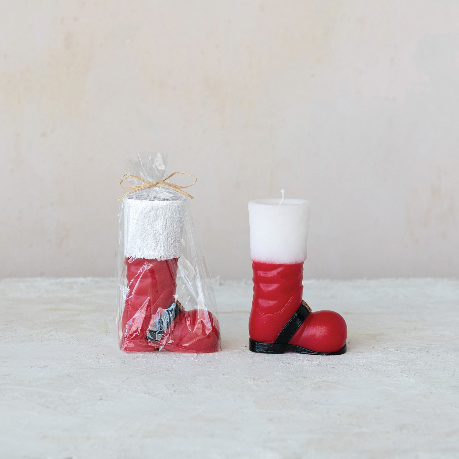 Unscented Santa Boot Shaped Candle, Red, White & Black