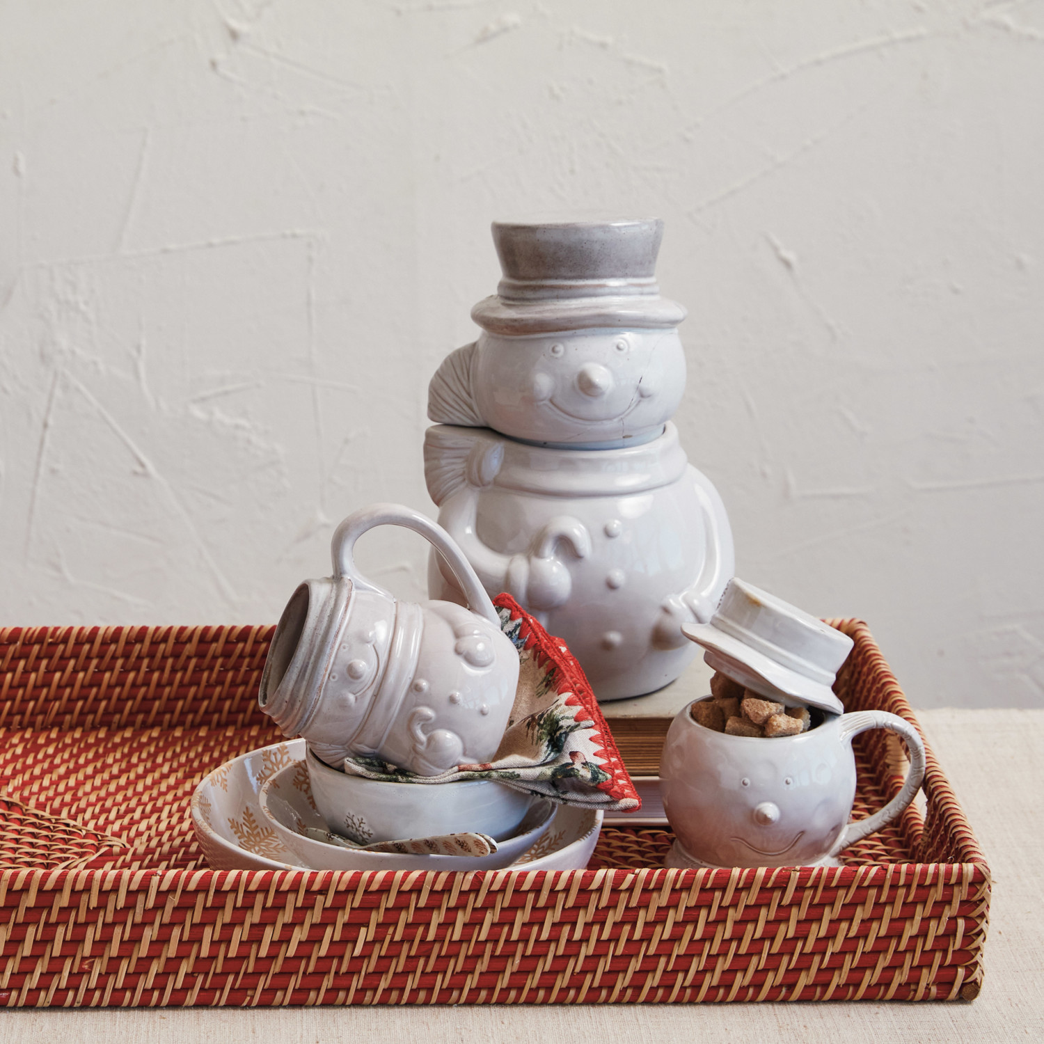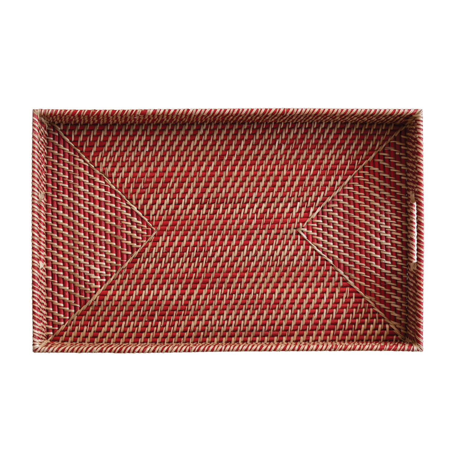 Catalog Name: 24"L x 15"W x 3"H Decorative Hand-Woven Rattan Tray w/ Handles, Natural & Red