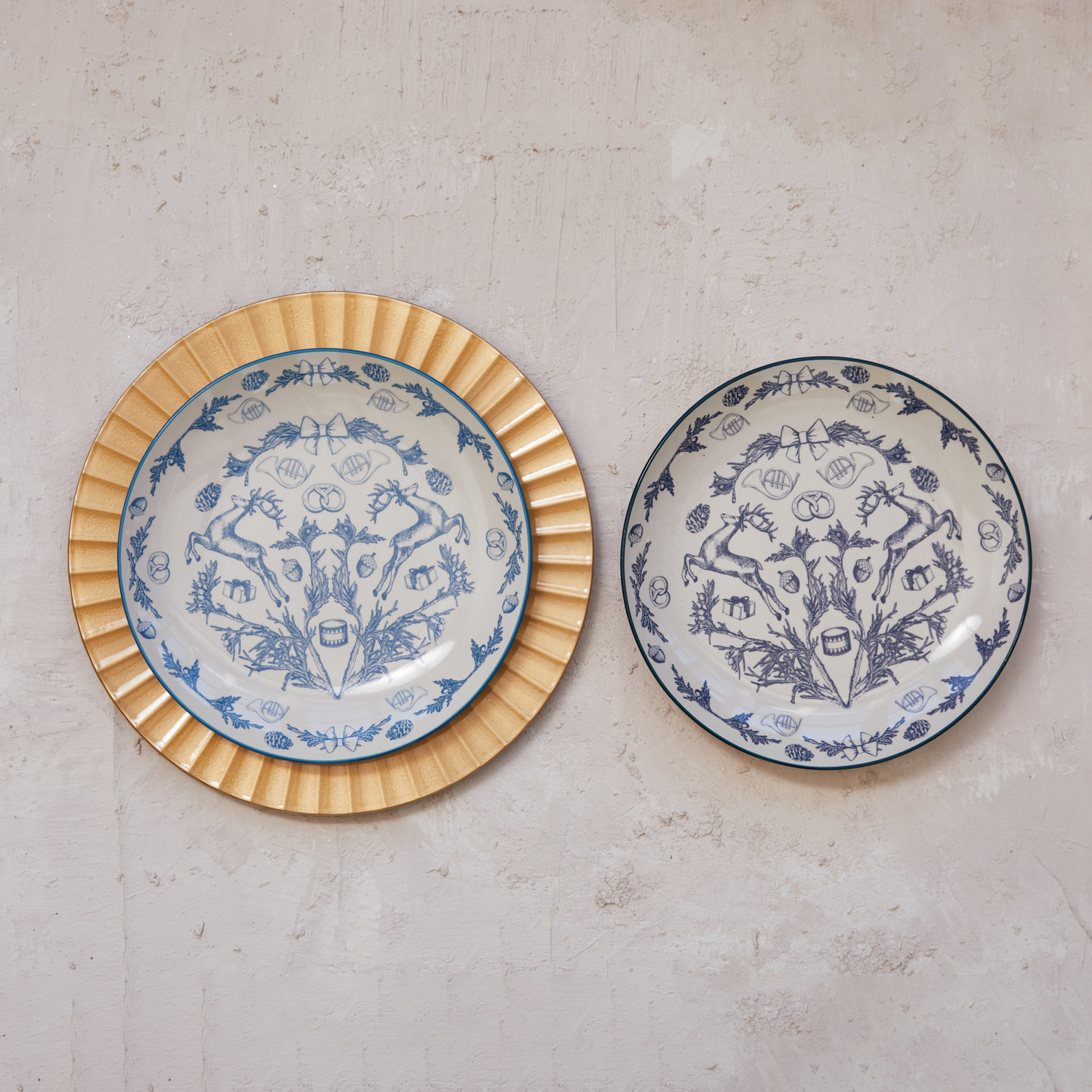 Catalog Name: 13" Round Decorative Plastic Fluted Charger, Gold Color