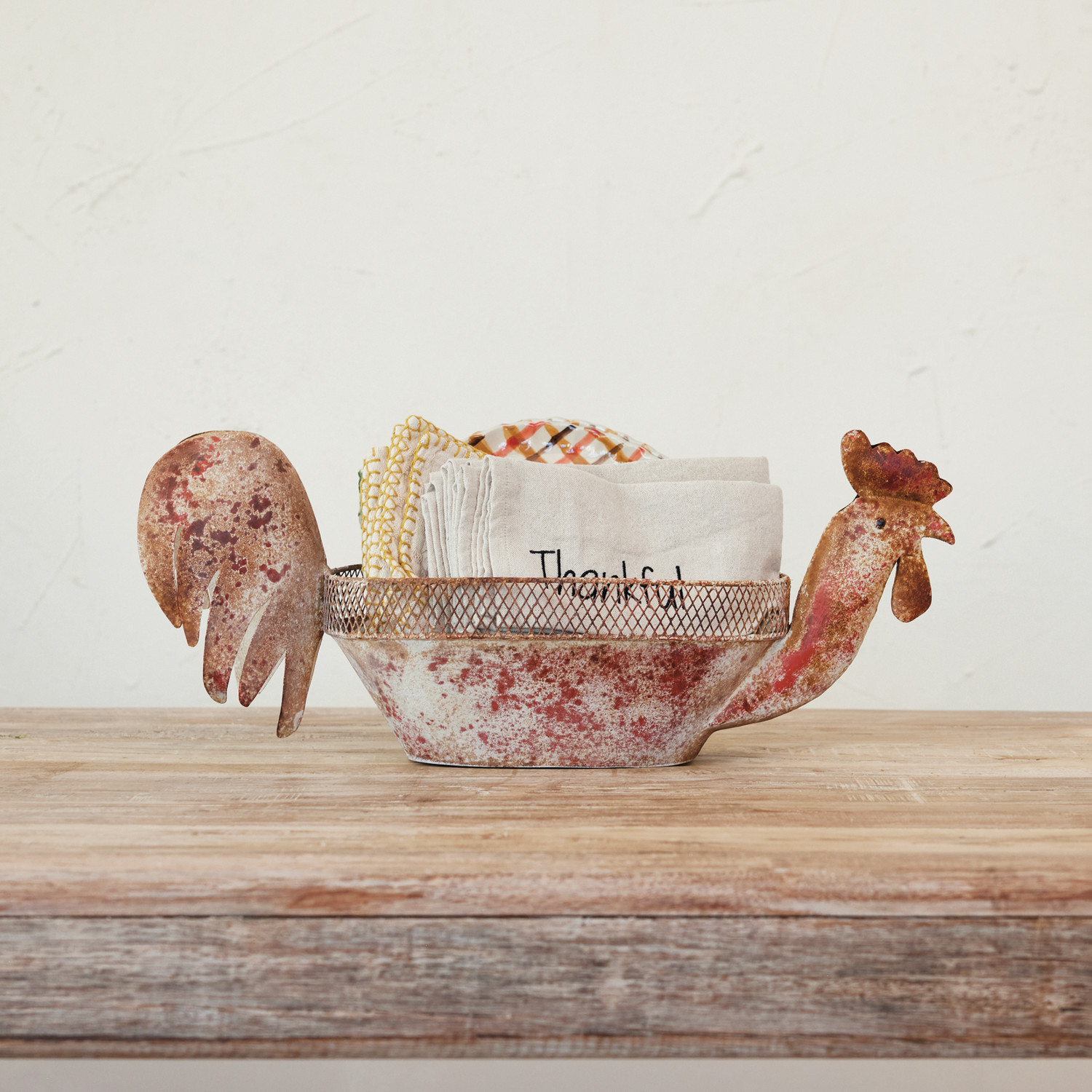 Decorative Metal Rooster Shaped Container (Each Will Vary)