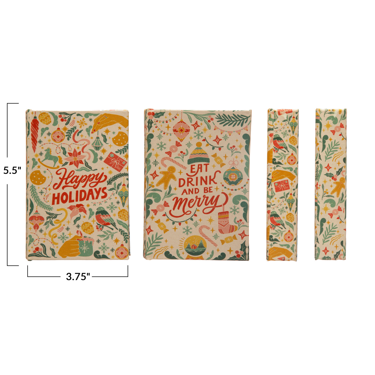 MDF & Canvas Book Box "Happy Holidays/Eat Drink And Be Merry", 2 Styles