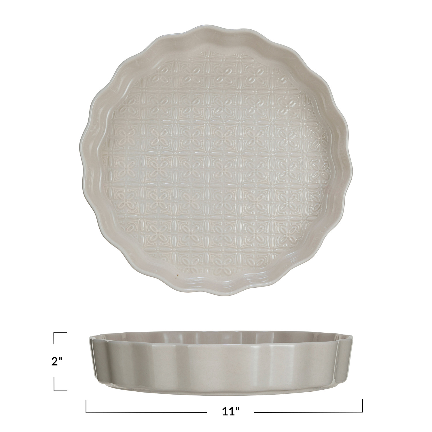 Catalog Name: 11" Round x 2"H Embossed Stoneware Fluted Pie Dish w/ Pattern, Cream Color