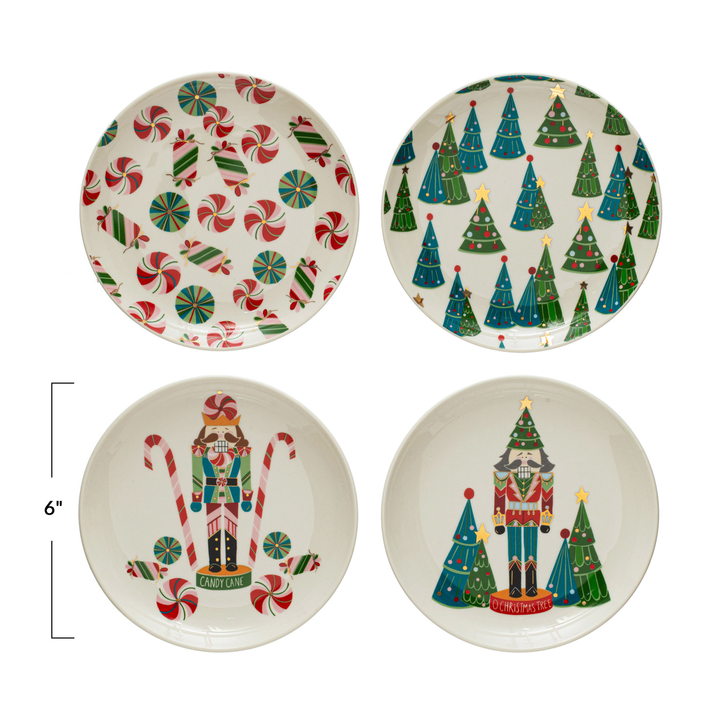 Catalog Name: 6" Round Stoneware Plate w/ Holiday Pattern/Image, Multi Color, 4 Styles ©