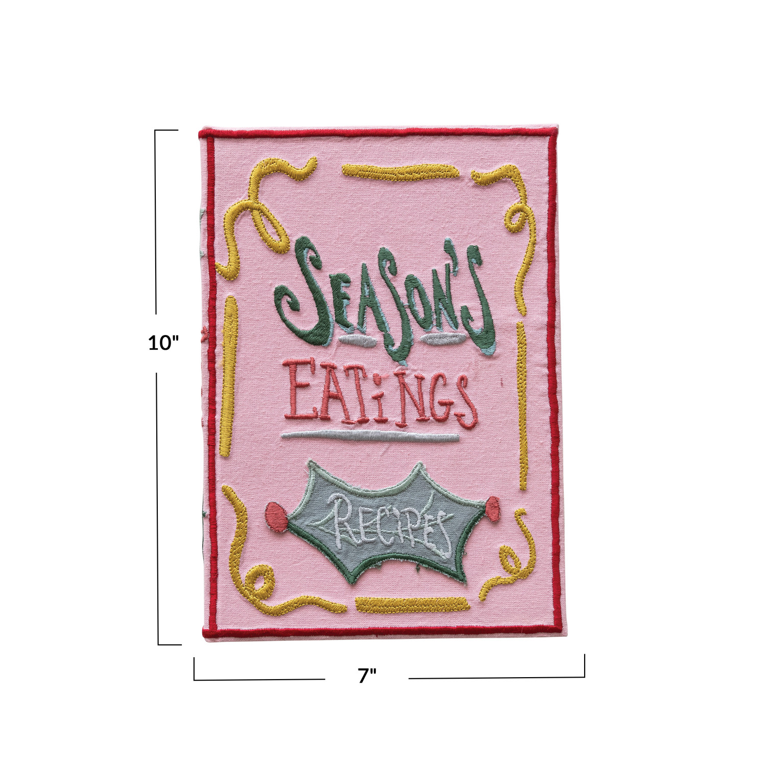 Catalog Name: 10"L x 7"W Handmade Paper & Embroidered Fabric Bound Recipe Book w/ 160 Ruled Pages "Season's Eatings Recipes", Multi Color ©