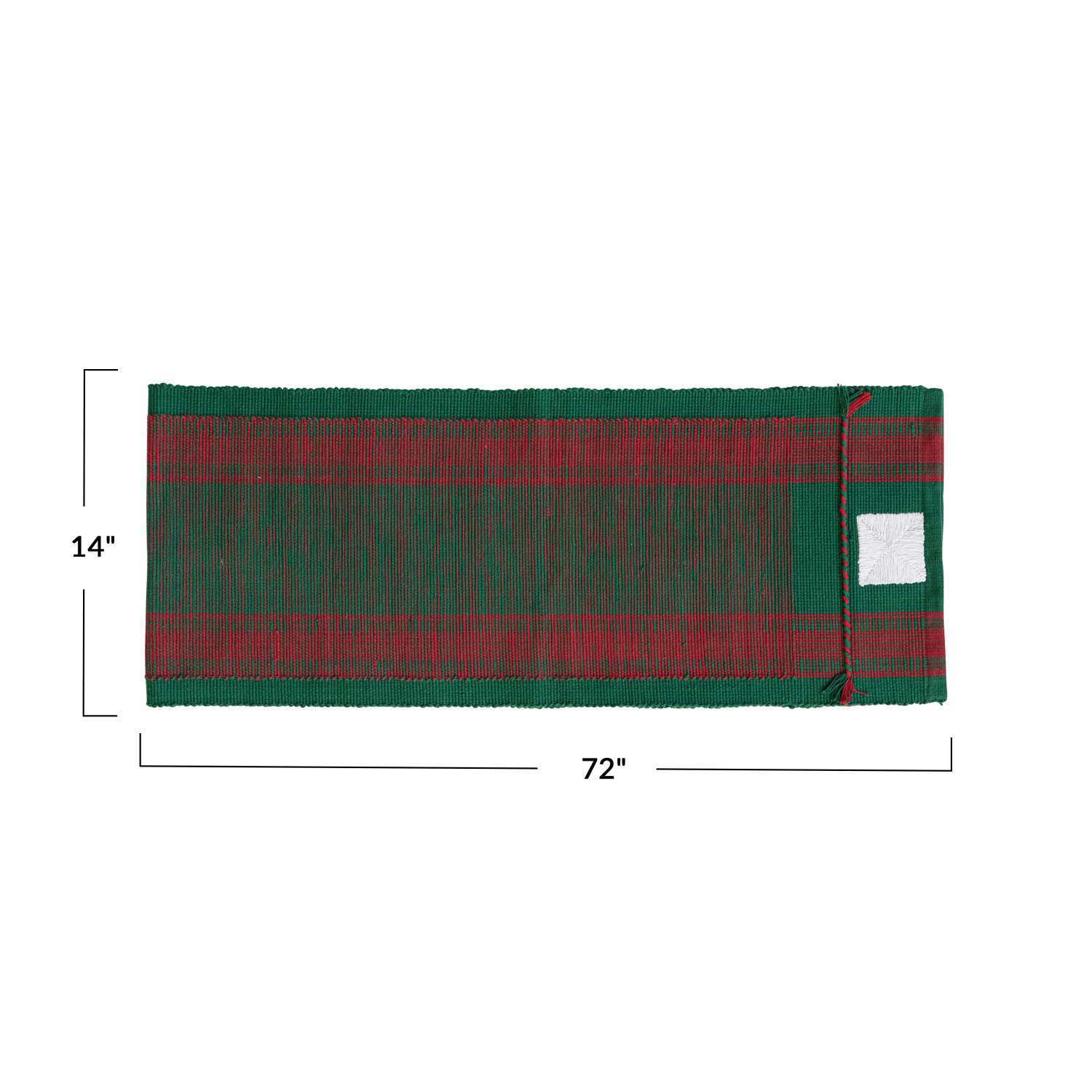 Catalog Name: 72"L x 14"W Woven Cotton Table Runner w/ Stripes, Green & Red