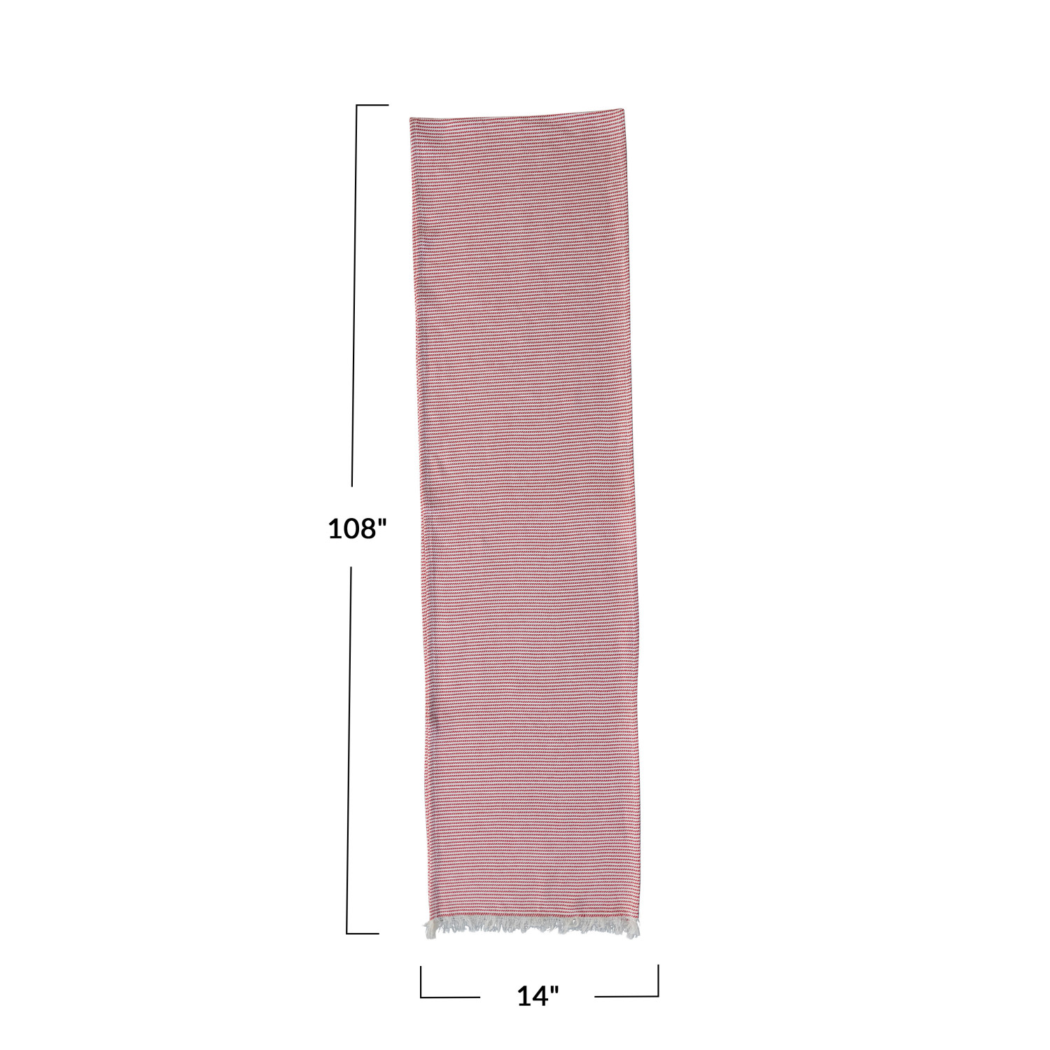 Catalog Name: 108"L x 14"W Woven Cotton Table Runner w/ Stripes & Fringe, Red & White