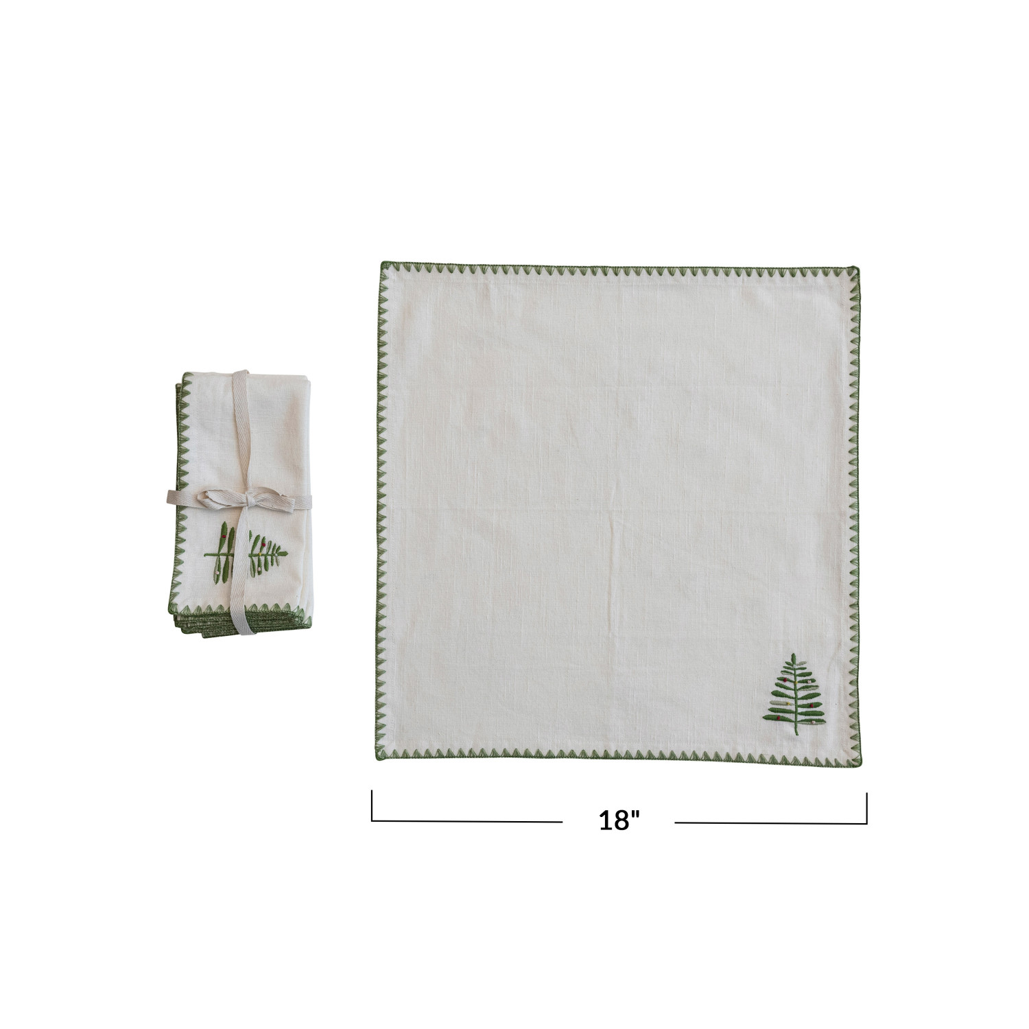 Catalog Name: 18" Square Cotton Napkins w/ Embroidered Tree & Edge, Natural & Green, Set of 4 ©