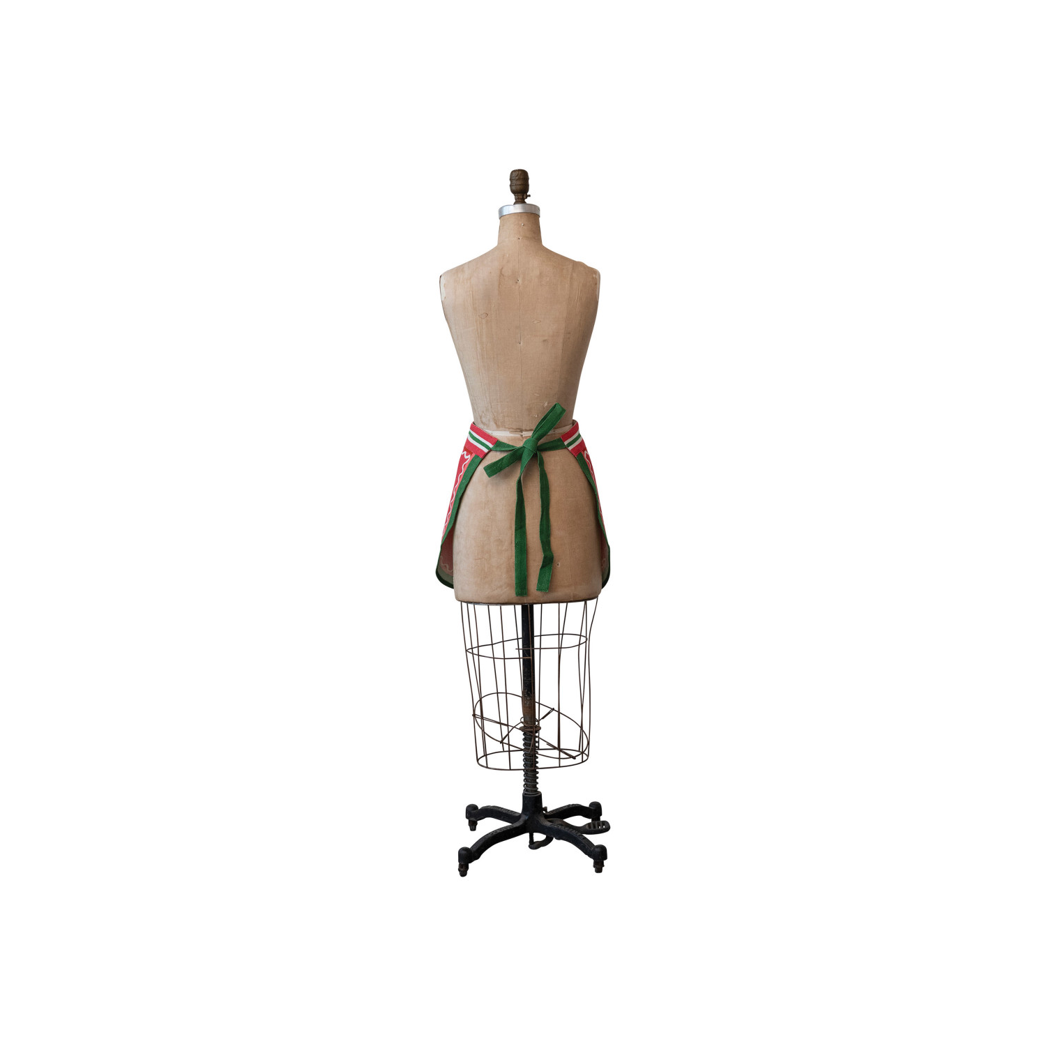 Catalog Name: 22"L x 17"W Cotton Slub Printed Half Apron w/ Embroidery, Holly, Pom Poms & Pocket "Kiss the CLAUS", Multi Color ©