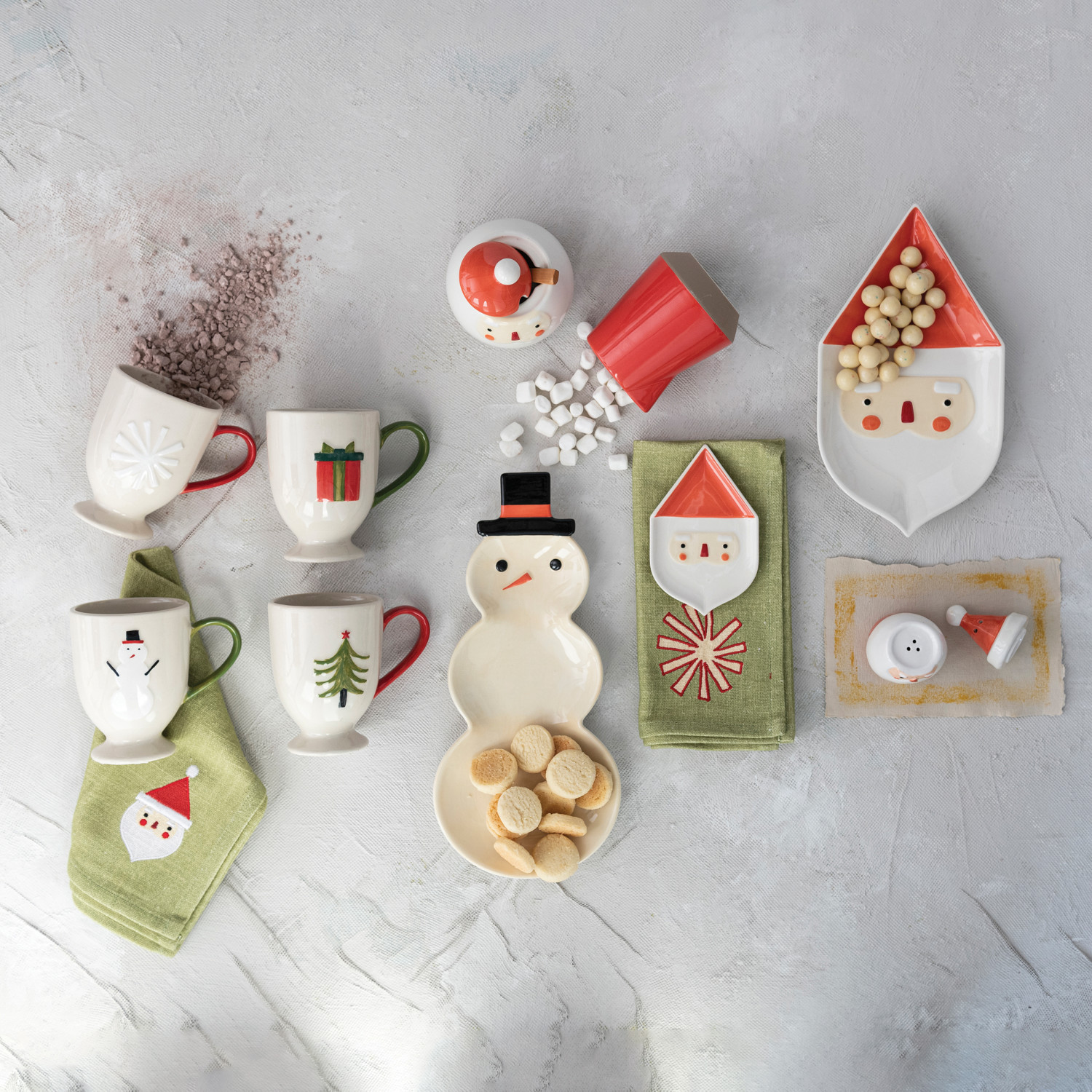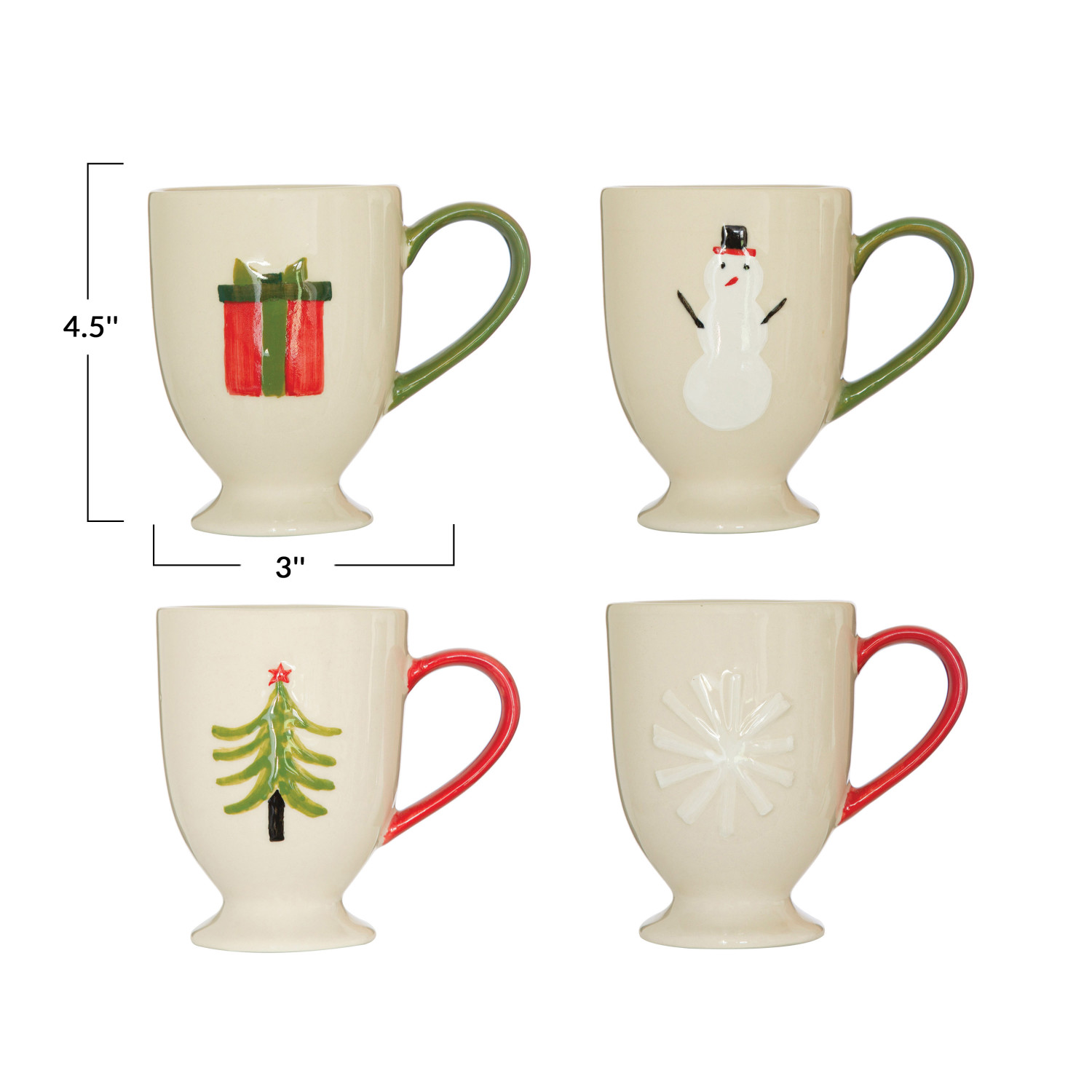 Round x 4-1/2"H 10 oz. Hand-Painted Embossed Stoneware Mug w/ Holiday Image, 4 Styles
