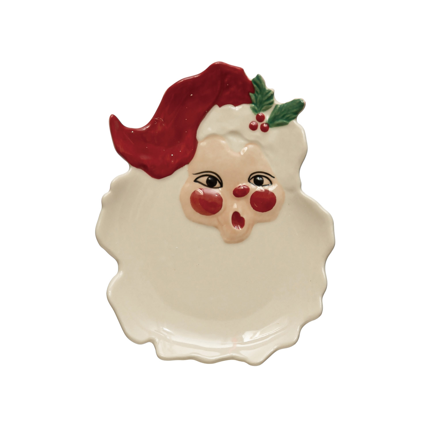 3-3/4"L x 4-3/4"W Hand-Painted Stoneware Santa Dish, Red and White