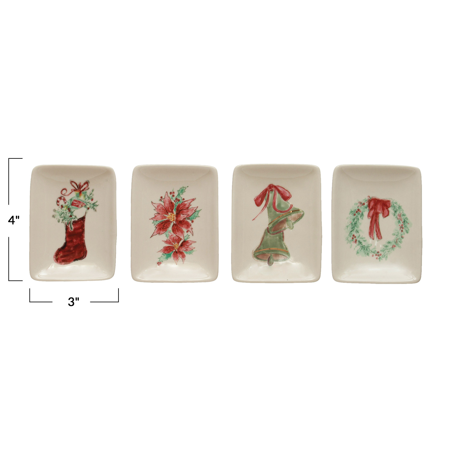 Catalog Name: 4"L x 3"W Stoneware Dish w/ Greenery/Holiday Image & Gold Electroplating, Multi Color, 4 Styles ©