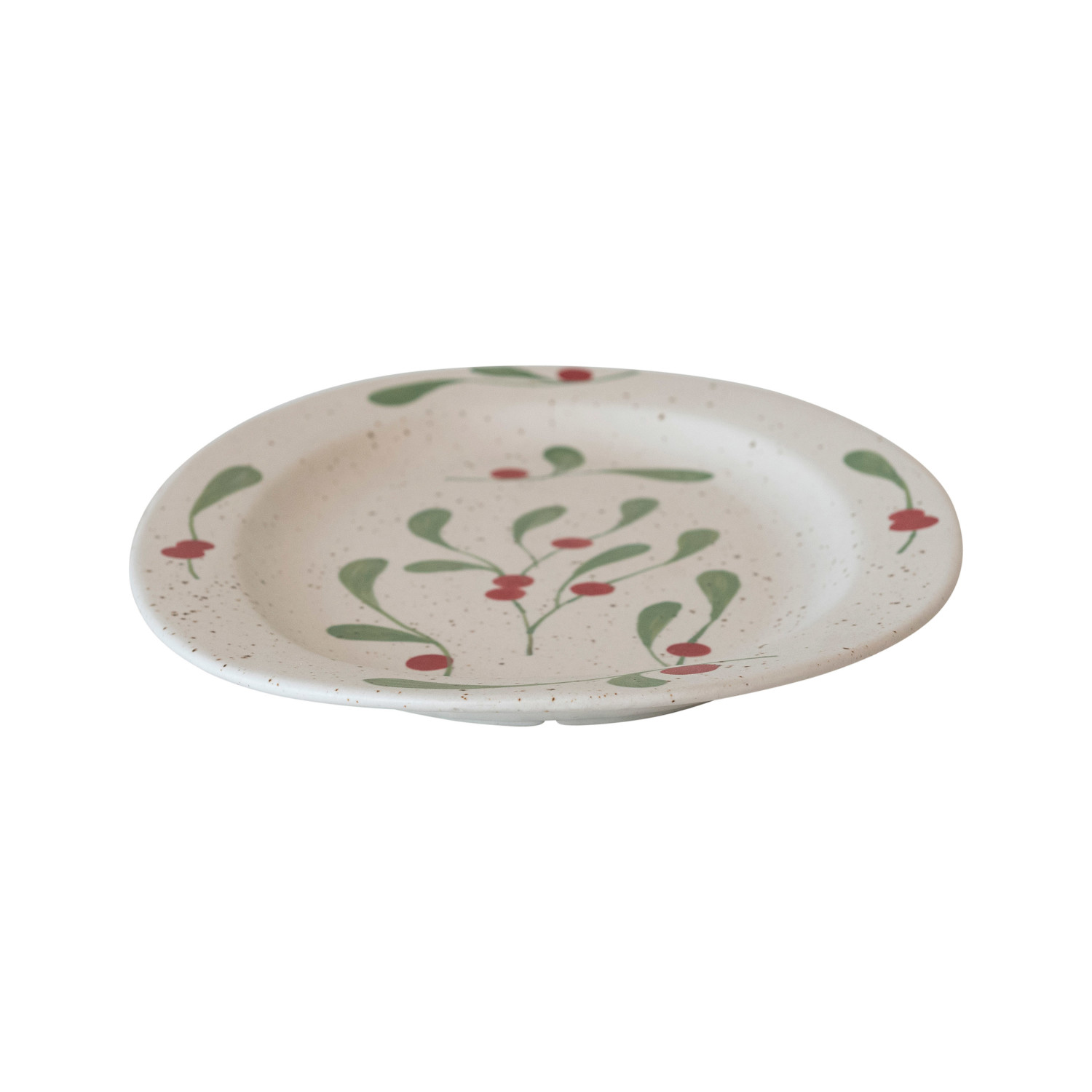 Catalog Name: 18"L x 13"W Hand-Painted Stoneware Platter w/ Holly Leaves & Berries, Red, Green & Cream Color Speckled