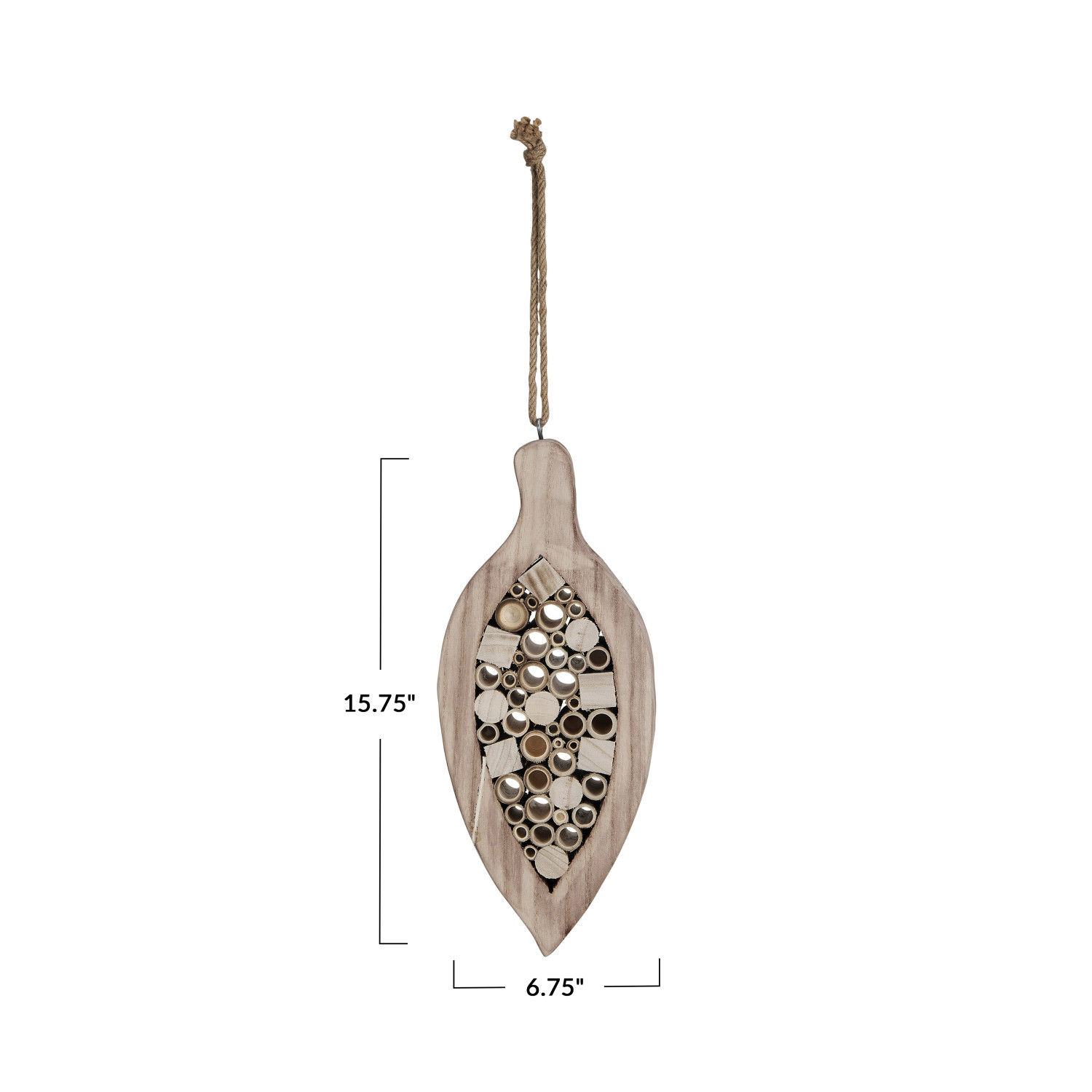 Catalog Name: 6-3/4"L x 2-3/4"W x 15-3/4"H Paulownia Wood & Bamboo Insect House w/ Jute Hanger, Natural