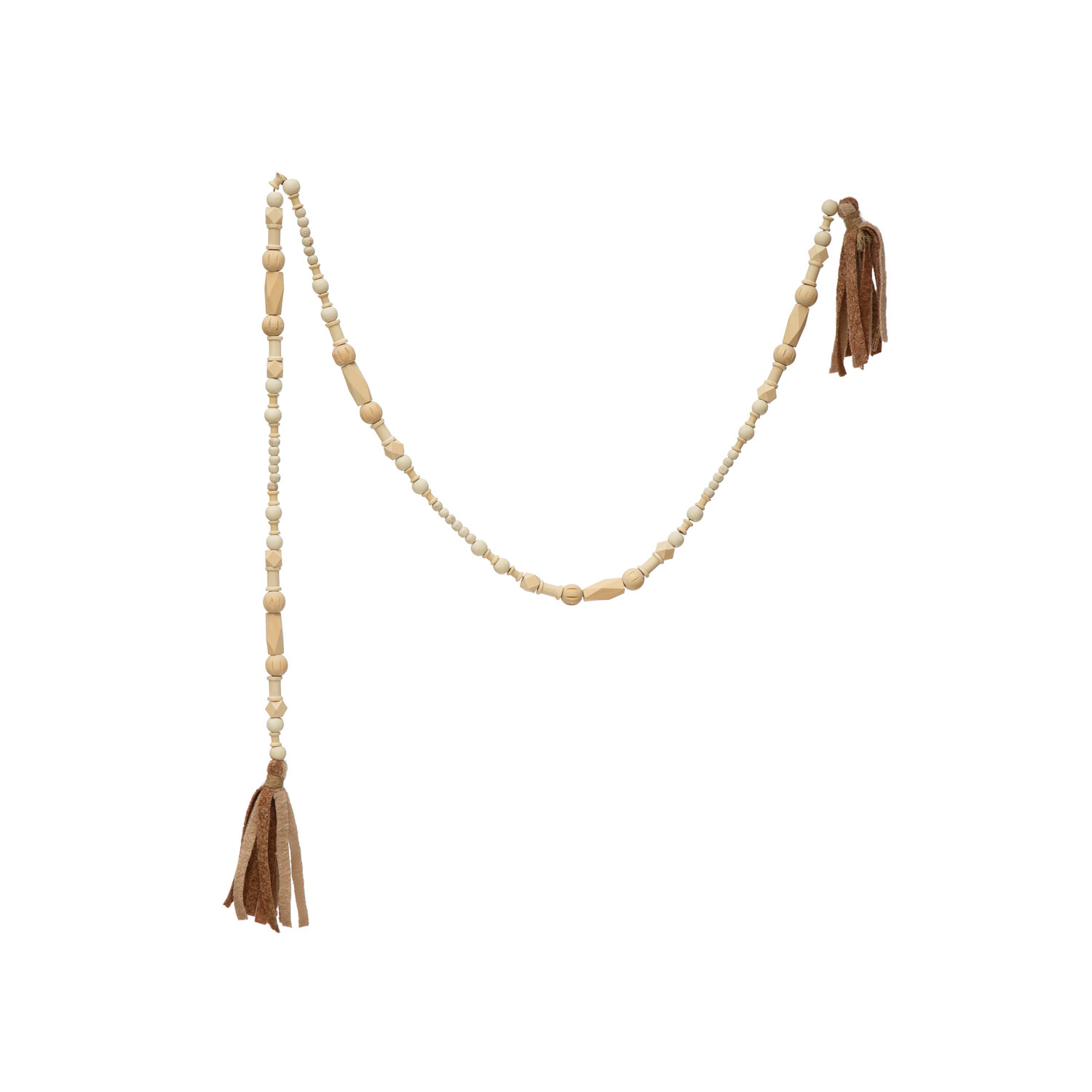 72"L Paulownia Wood Bead Garland with Fabric Tassels