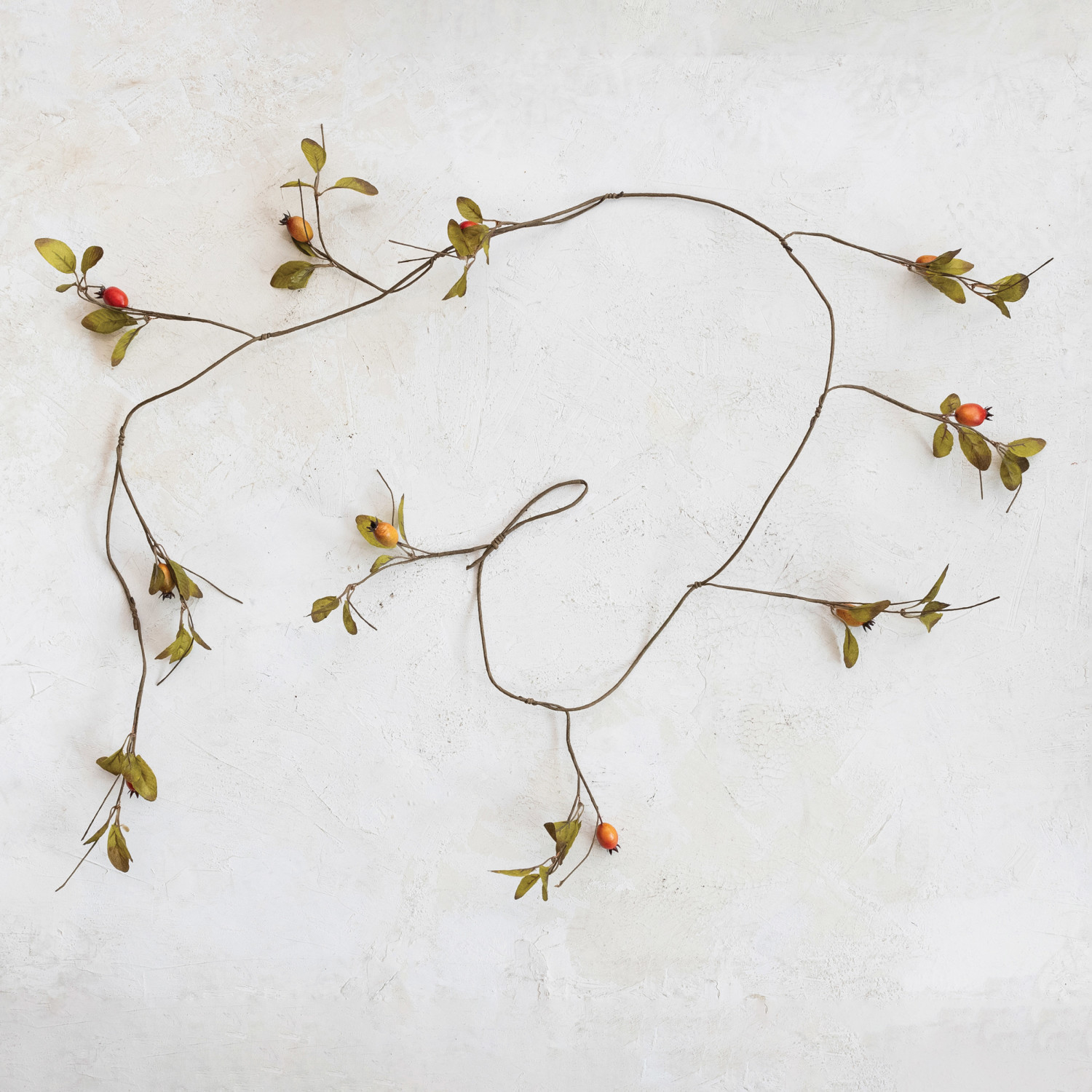 Catalog Name: 72"L x 6-1/4"H Faux Rose Hip Garland, Green & Orange Color