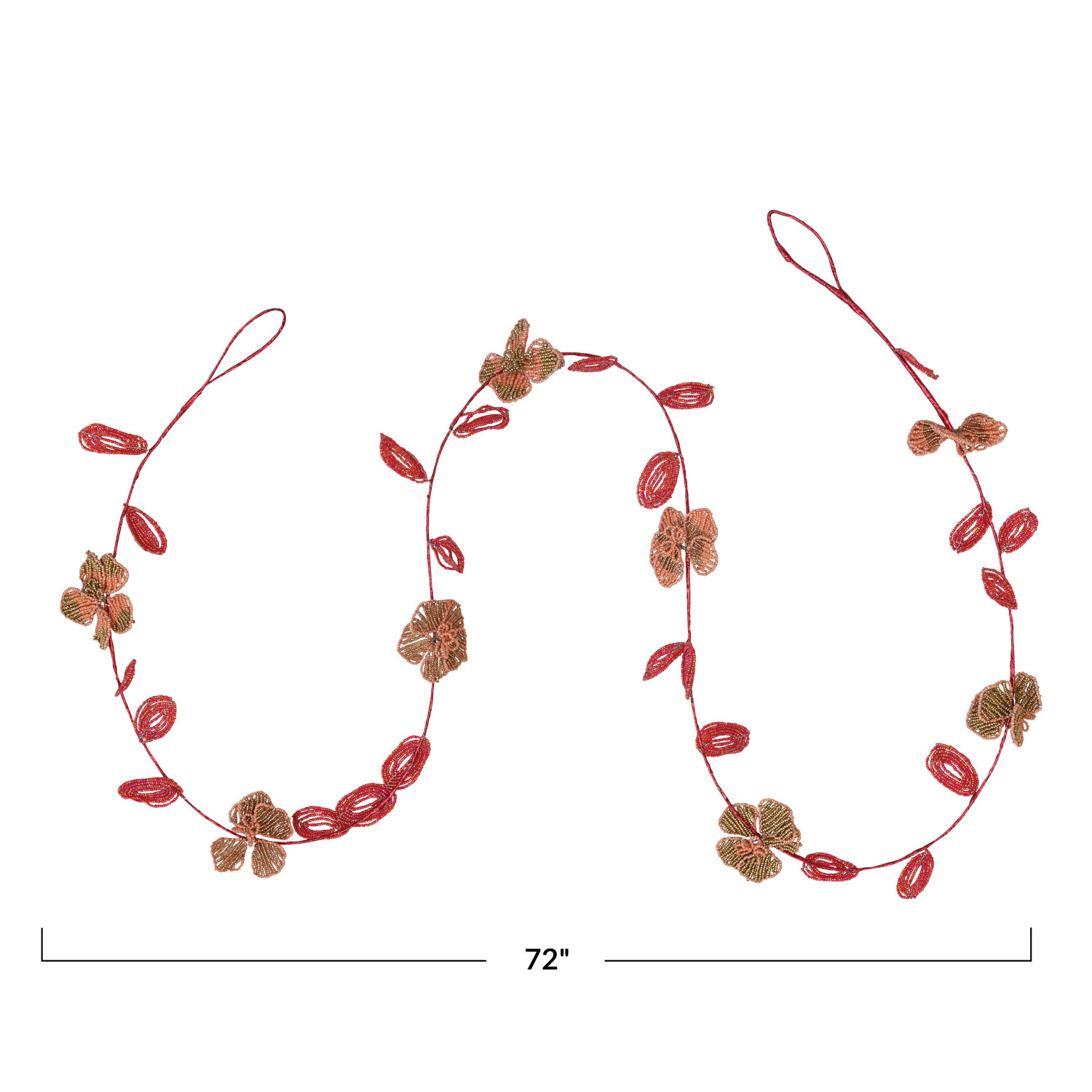 This elegant garland features intricately beaded leaves and flowers strung together with metal wire. Add a touch of festive whimsy to any space with our enchanting collection of garlands, including stunning glass, sleek metal, and delightful mixed-material options, all expertly crafted to create a merry and bright atmosphere.