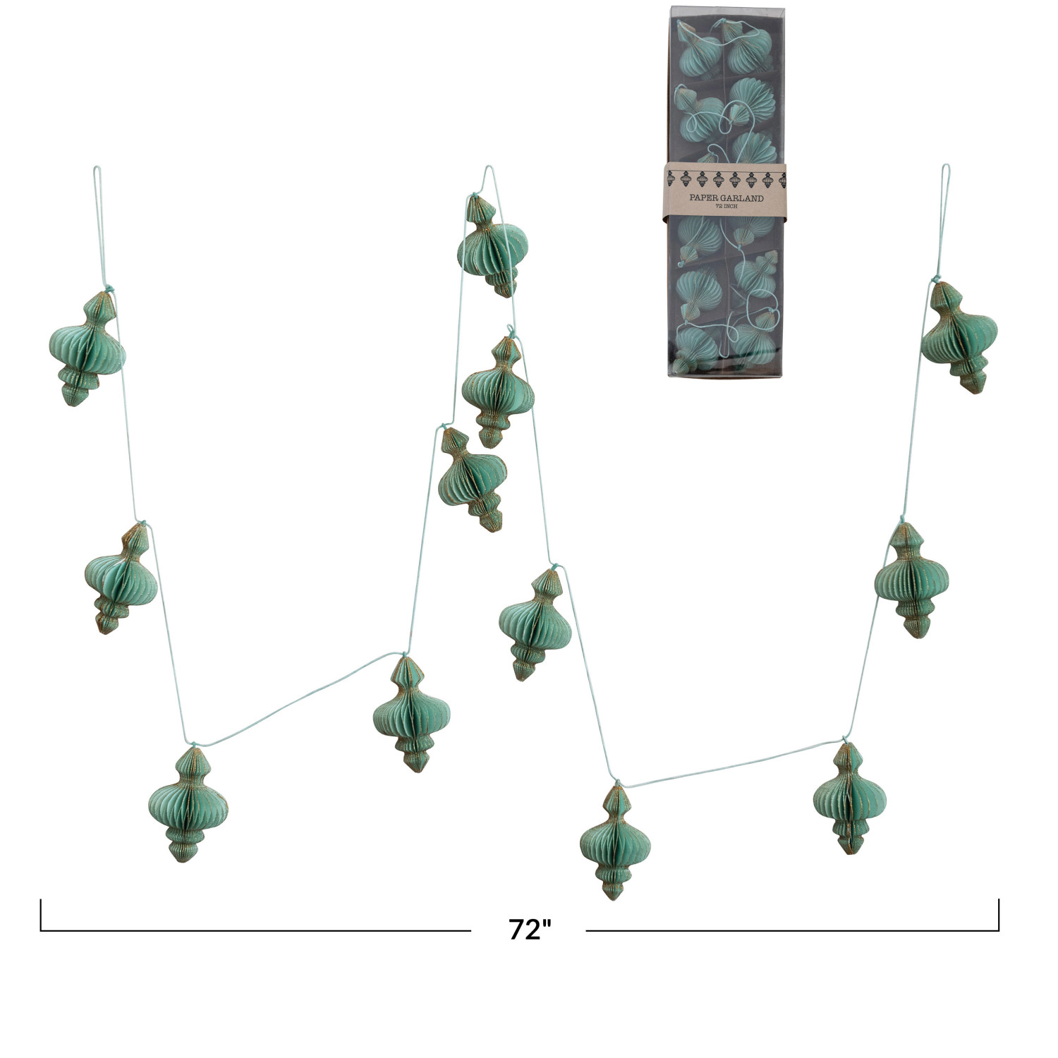 Catalog Name: 72"L Handmade Recycled Paper Honeycomb Finial Garland w/ Gold Glitter, Turquoise Color