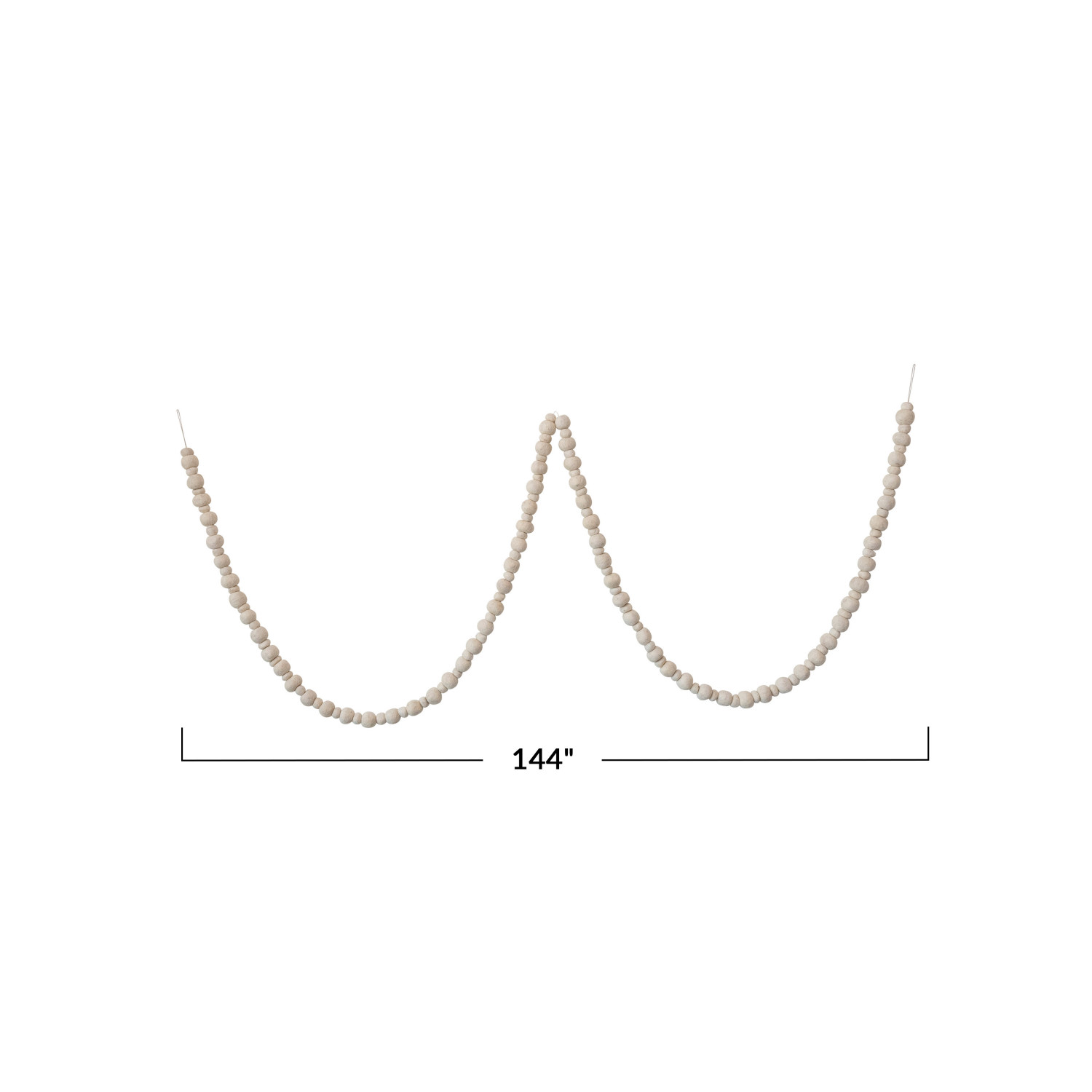 Catalog Name: 144"L x 1-1/2"H Handmade Wool Felt Ball Garland in Printed Drawstring Bag, Cream Color
