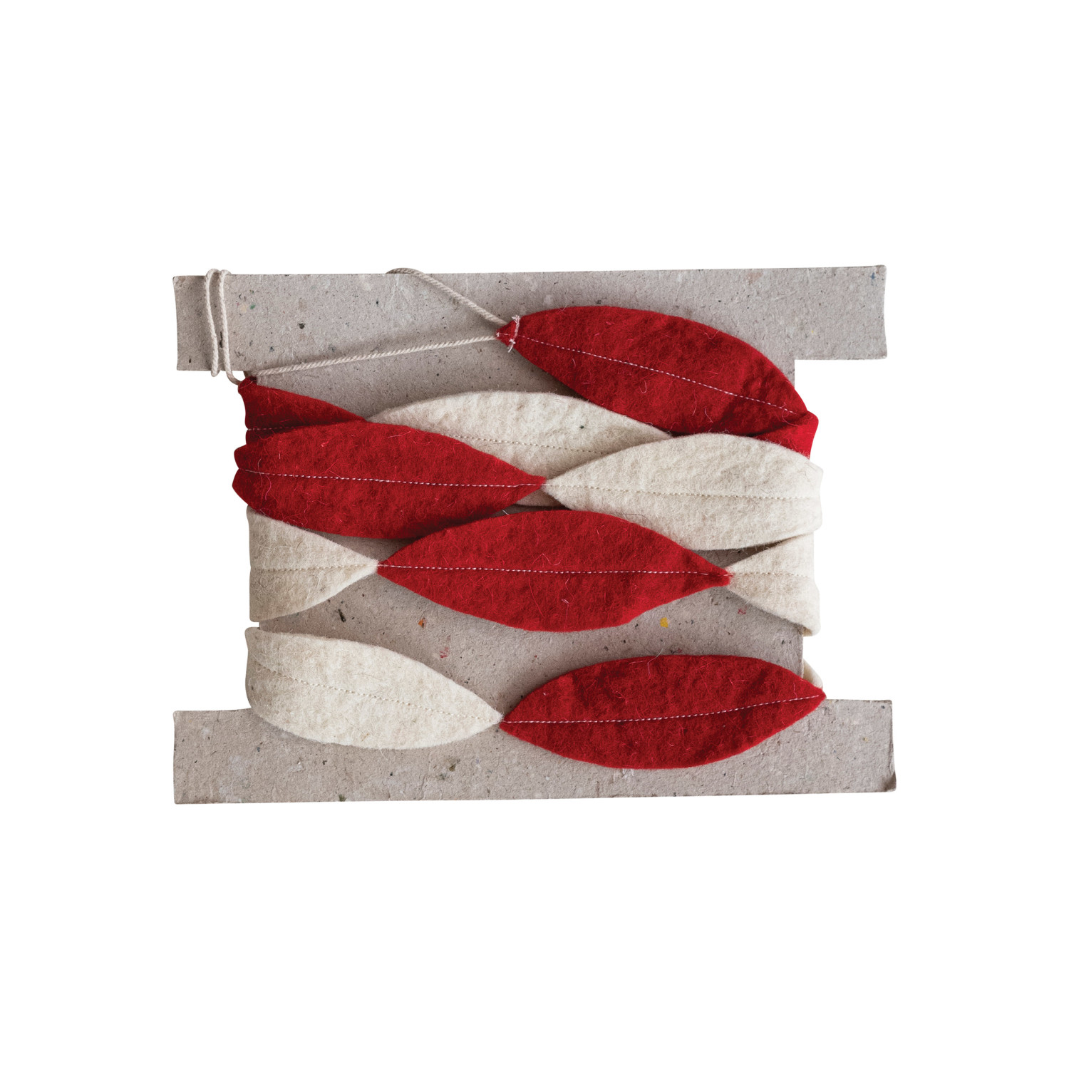 Catalog Name: 72"L x 1-1/2"H Handmade Wool Felt Garland, Red & Cream Color