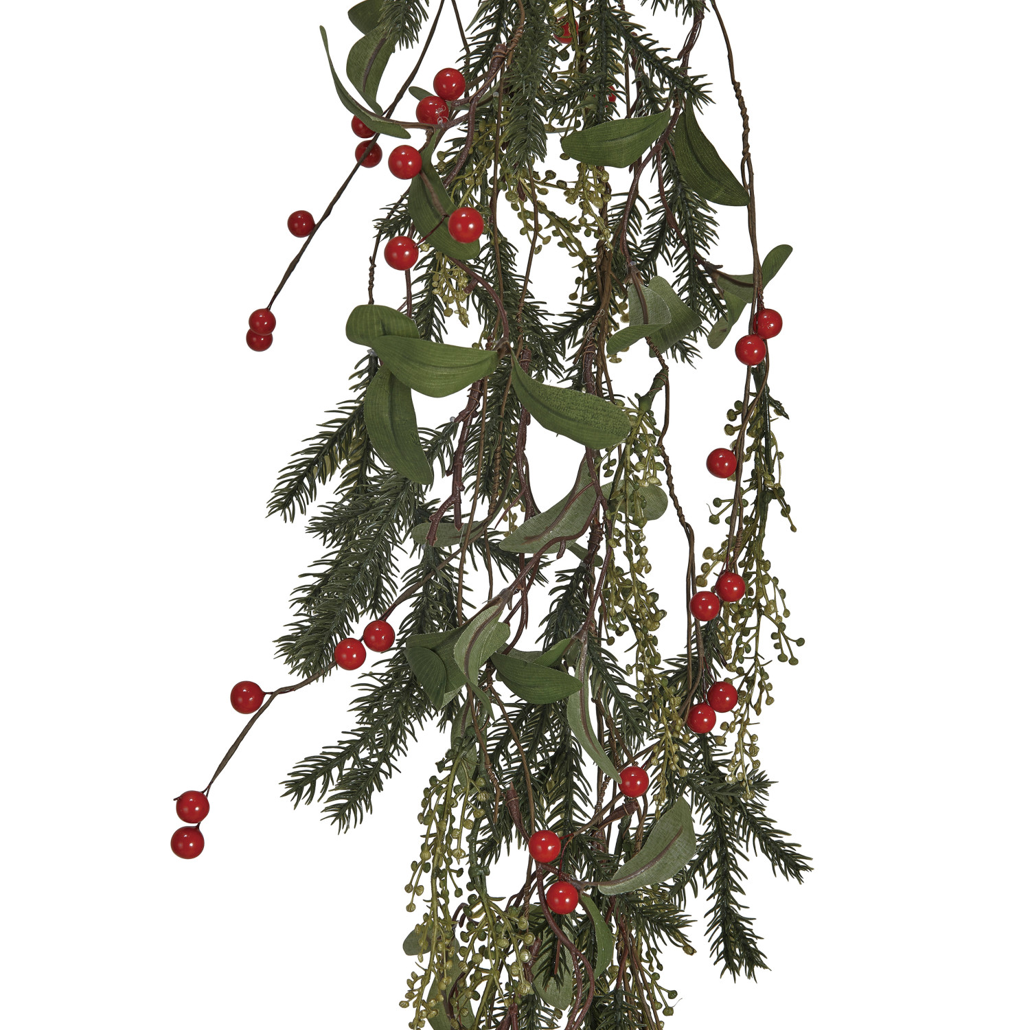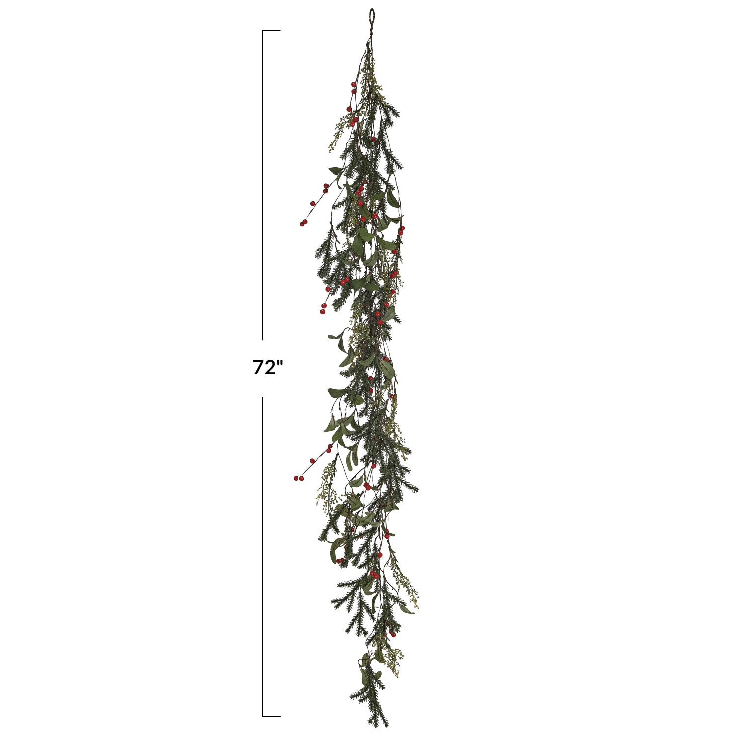 Catalog Name: 72"L x 7-3/4"H Faux Pine & Mistletoe Garland w/ Red Berries, Green