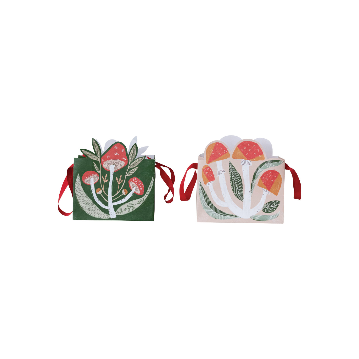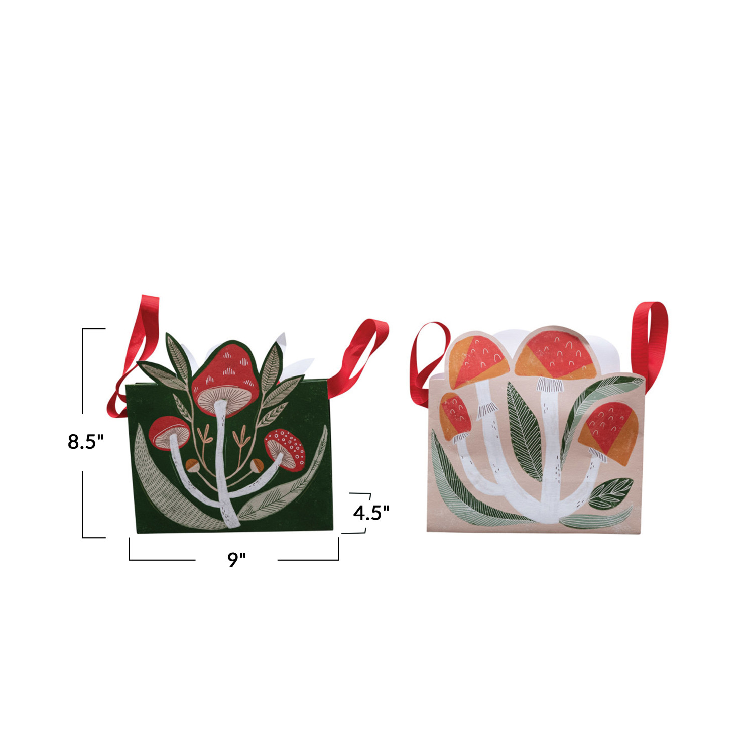 Catalog Name: 9"L x 4-1/2"W x 8-1/2"H Printed Recycled Paper Mushroom Shaped Gift Bag, Multi Color, Set of 2 ©